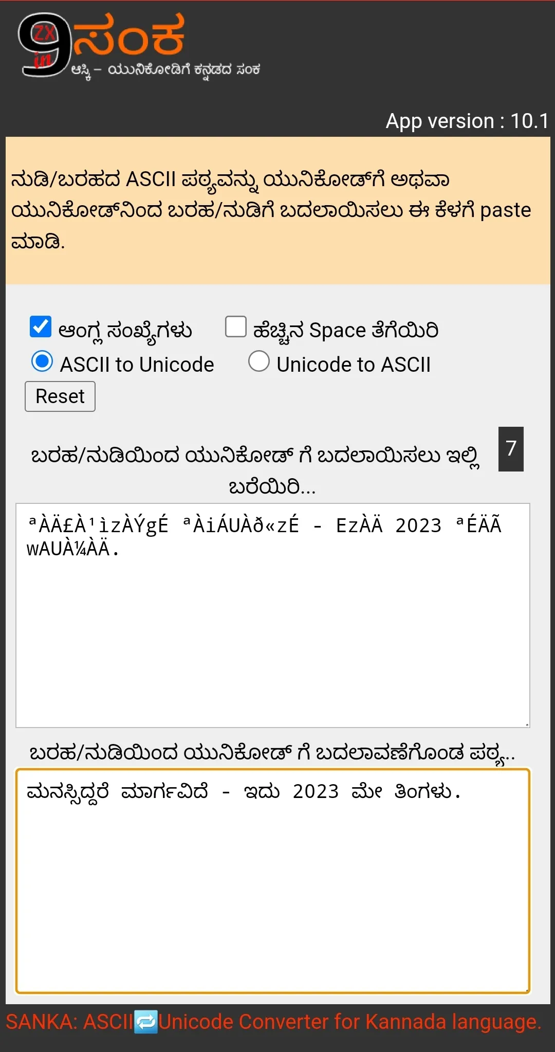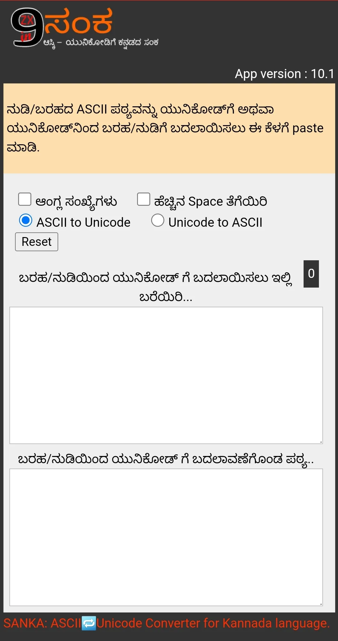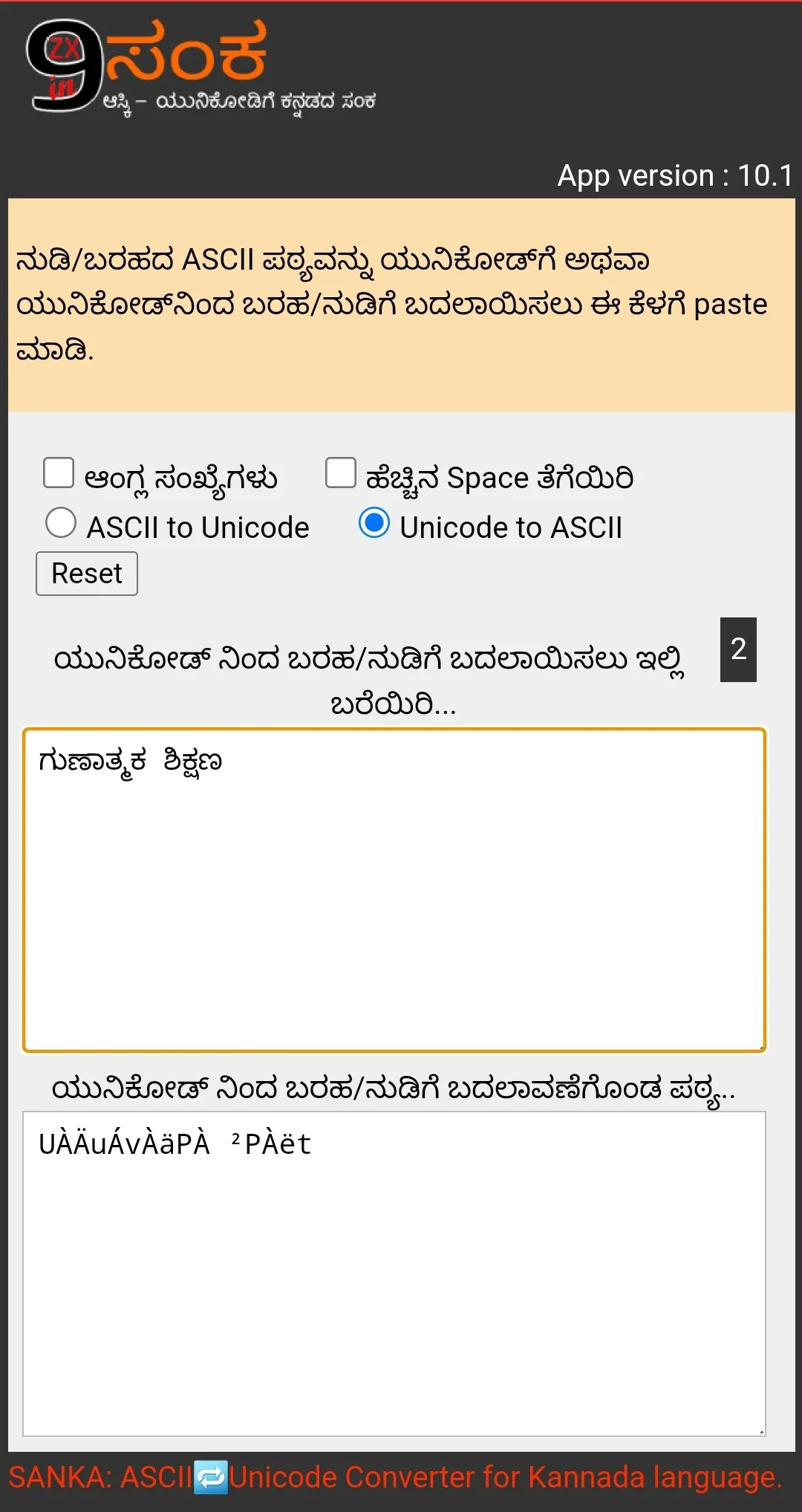 ºÀZÉѪÀÅ PÀ£ÀßqÀzÀ ¢Ã¥À. - 👈🏾 It is true that one CAN NOT READ that type of text in Kannada ASCII - in all devices. You might have seen such characters in the documents shared over mobile. But that can be read whenever that text is pasted into 9zx-Sanka app. ! 9ZX Kannada Sanka [ ಕನ್ನಡ ಸಂಕ ] is a tool used for converting Kannada ASCII text into Unicode text. (initial release, but in a working state) ...