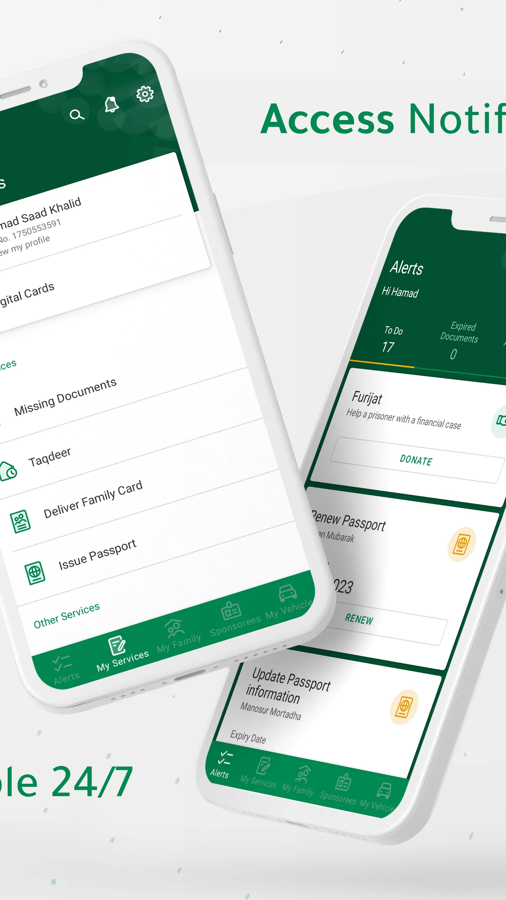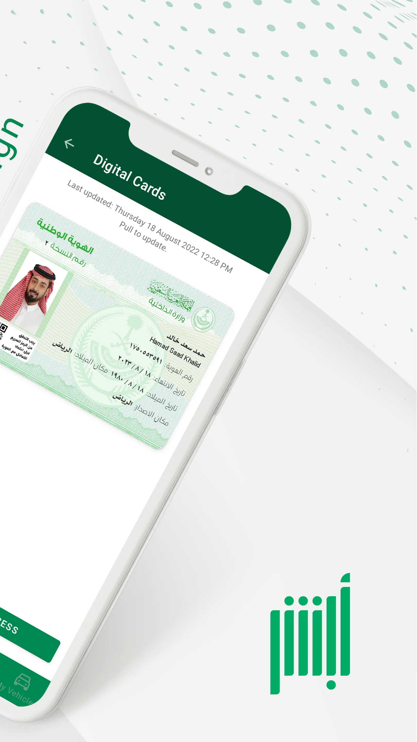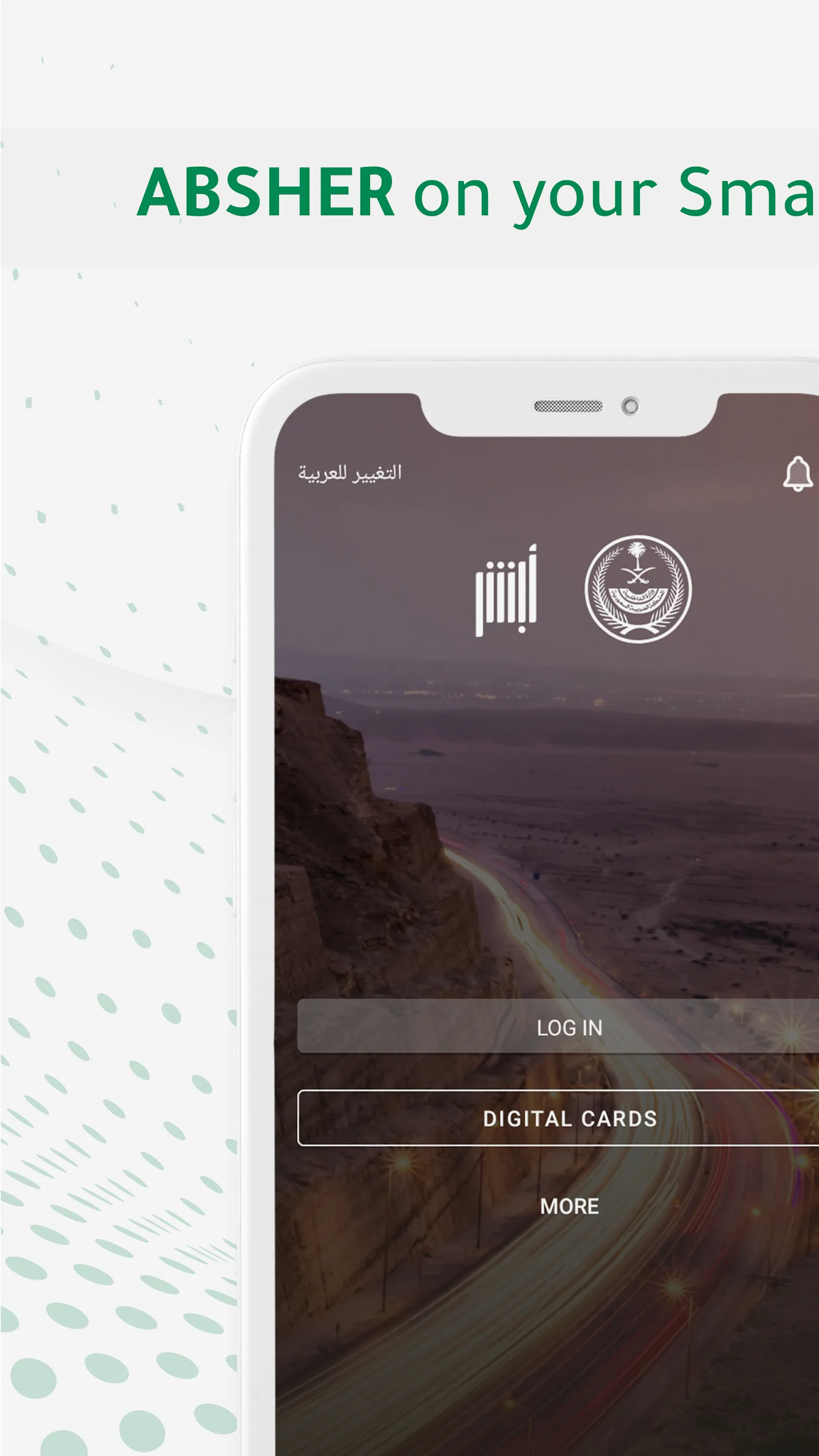 Absher is the official individuals eServices Mobile Application that provide the services of Absher portal in Kingdom of Saudi Arabia. - With Absher, which is available in both Arabic and English, you will be able to perform many services for individuals in KSA whether they are citizens or residents. - Absher has been designed and developed with special consideration to security and privacy of user's data and communication. So, you can safely browse your profile or your family members, or lab...