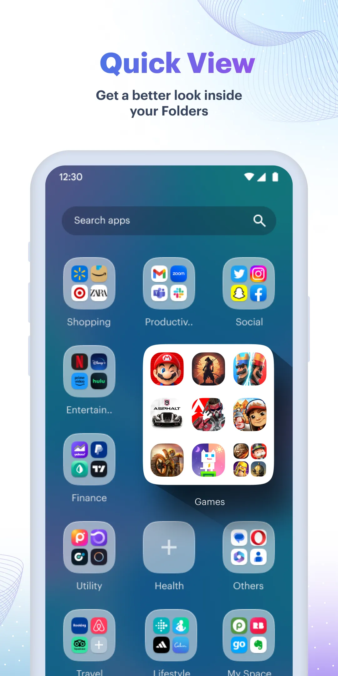 The Folder Wall is an app that extends the boundaries of the Android ecosystem in terms of helping you access your apps faster. The Folder Wall organizes all your installed apps into a single, easy-to-navigate location. It can be used as an app and placed in your app dock on the home screen for easy access. It can also be placed as a full-screen widget on your +1 or +2 home screen. The apps are sorted into categories, such as "Suggestions," "Recently Added", "Shopping," "Gaming," and "Favorites," and can also be searched for by name. ...