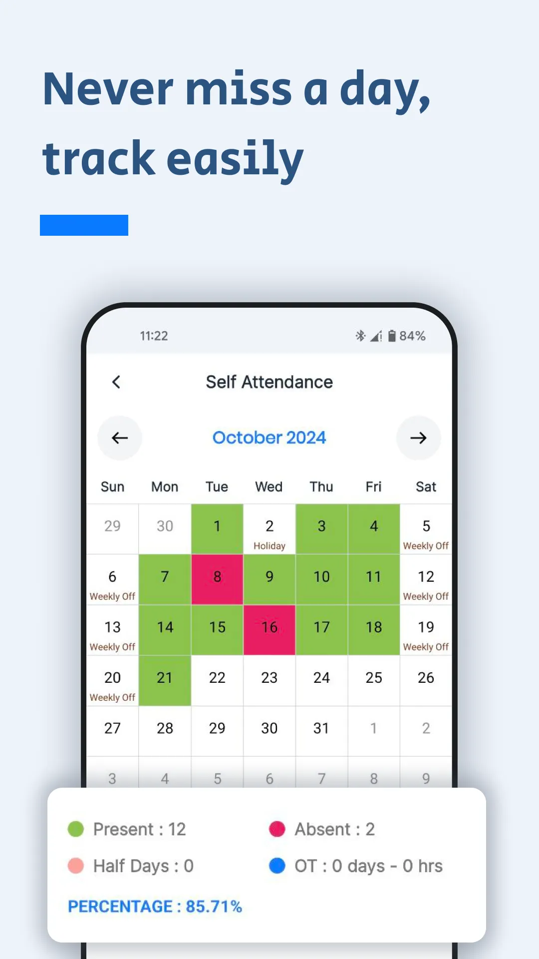 Stay organized and never miss a day of attendance! Track, manage, and analyze your attendance effortlessly with the Attendance Tracker – the perfect attendance management app for students and staff. Whether you're a student keeping track of your classes or a staff member managing shifts, overtime, and leave days, this app is built to handle all your attendance needs. Key Features ...