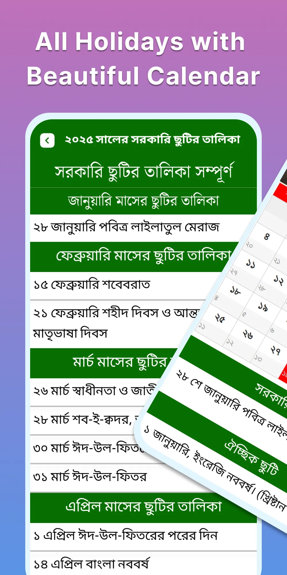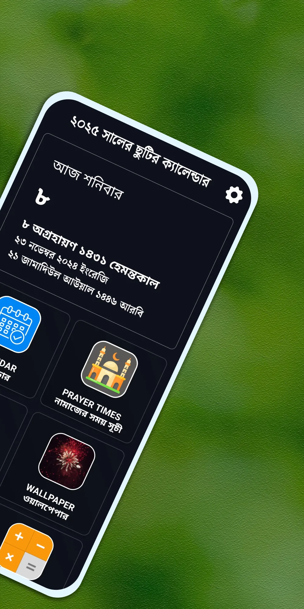 Stay organized in 2026 with the Bangla Arabic English Calendar 2026 – your complete holiday and prayer time calendar app. This app is designed for both government and private employees in Bangladesh, helping you easily find government holidays, Islamic holidays, Hindu holidays, Christian holidays, and public holidays in one place. You can view dates in Bangla, Arabic, and English, along with detailed information about each holiday. The app also includes prayer times, Qibla compass, wallpapers, notes, and status captions, making it more than just a calendar. Whether you need a Bangladesh Government Holiday Calendar 2026 or want to keep track of Bangla, Hijri, and English dates—this app has everything in one place. ...