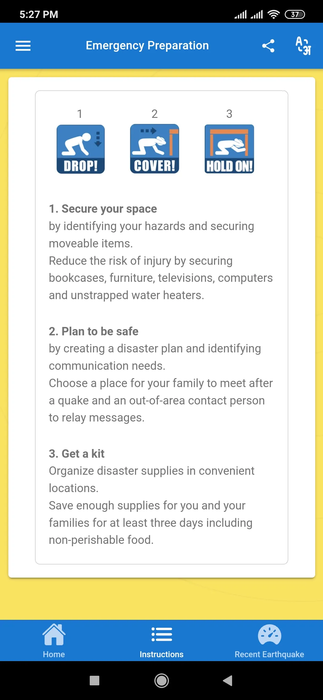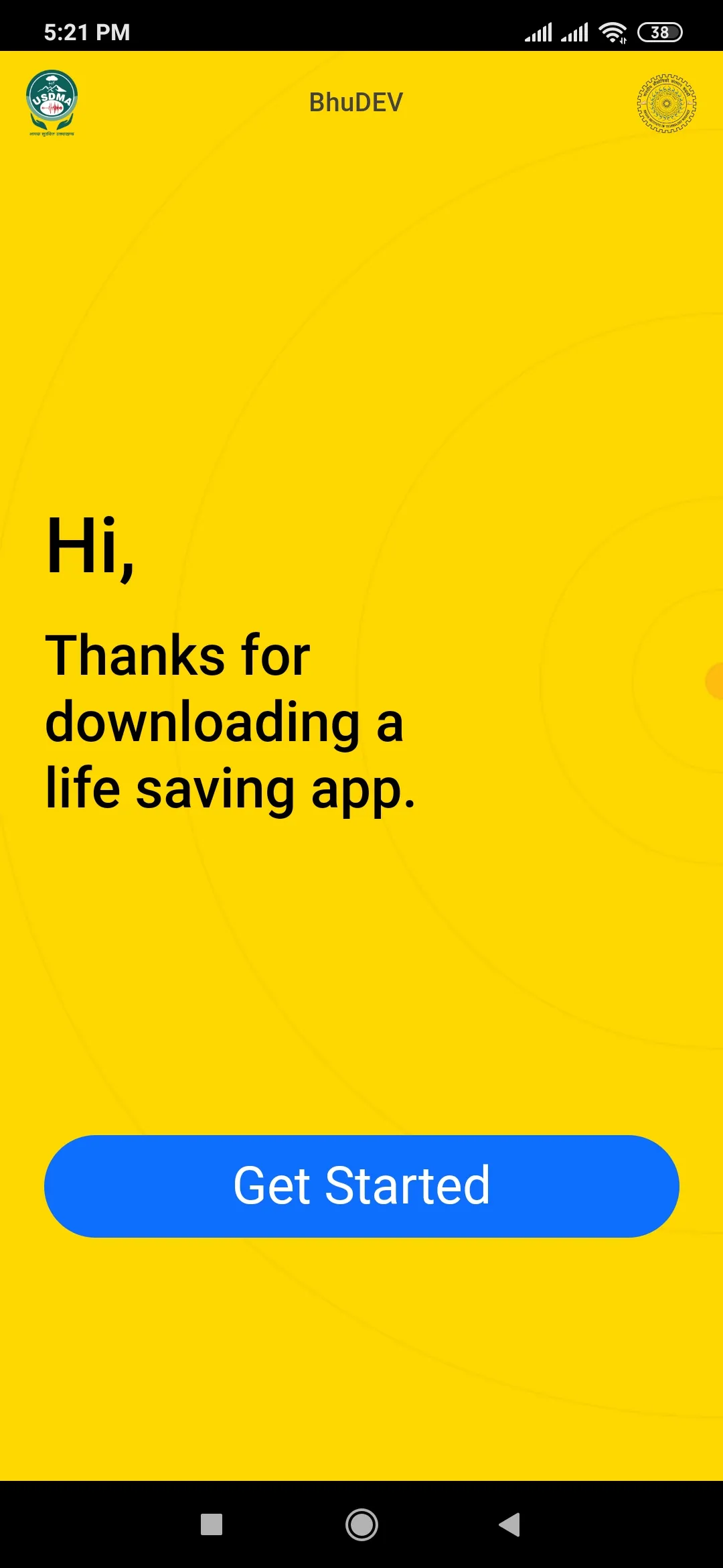 Bhudev gives Early Warning of damaging Earthquakes originating in Uttarakhand, a Himalayan State of India. The app is designed to disseminate earthquake early warnings to the users, so that users can save themselves from the damaging earthquake waves. The app receives warning through internet connection, so users are requested to be connected through the internet all the time. The app uses data only during the Earthquake notification.