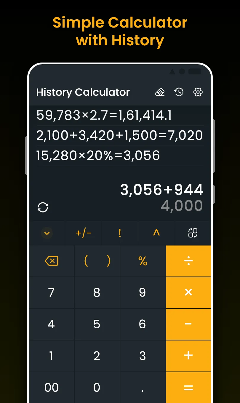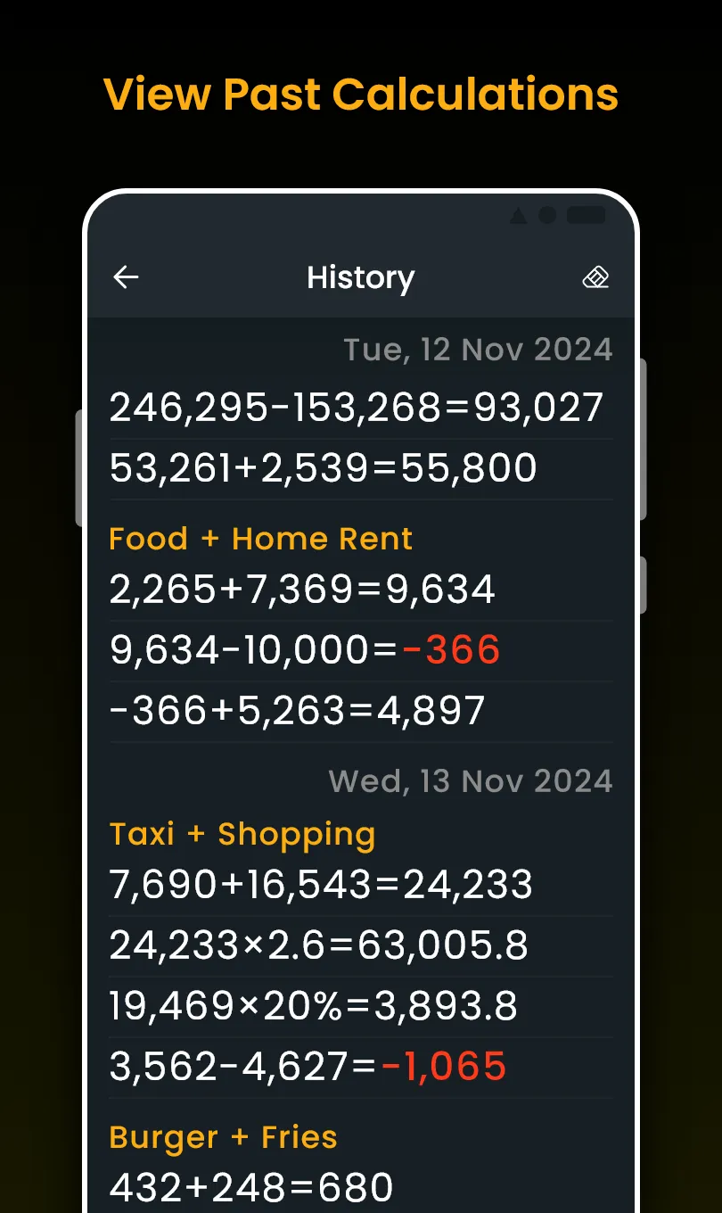 Calculator with History Check is a tool for solving your calculations in your daily life. This free history calculator can allow you to check your calculation history and save your records as much as you want with custom notes on history. It can feel the same as holding a big calculator on hand and saving your time with that. 🔑KEY FEATURES 🕝Check History Simple calculator with history save function keeps a detailed record of calculation for proper expense monitoring, financial records, or more. This feature helps you save time by avoiding having to recreate your previous tasks....