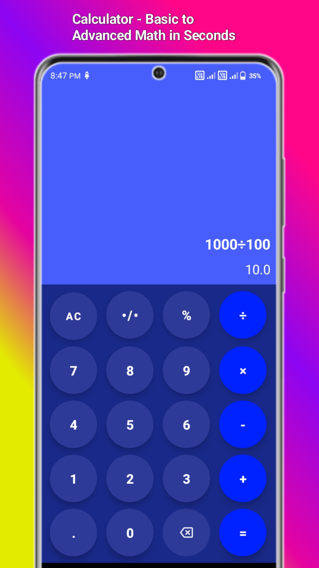Calculator - A fast, reliable, and easy-to-use calculator designed for everyday use. Perform basic to advanced calculations including percentage, square root, and memory functions. With a clean interface, smooth performance, and offline support, this app is ideal for students, professionals, and daily users. Lightweight, ad-free, and efficient—everything you need in a modern calculator. Efficient and accurate calculator built for quick everyday use. Supports all essential math functions with re...