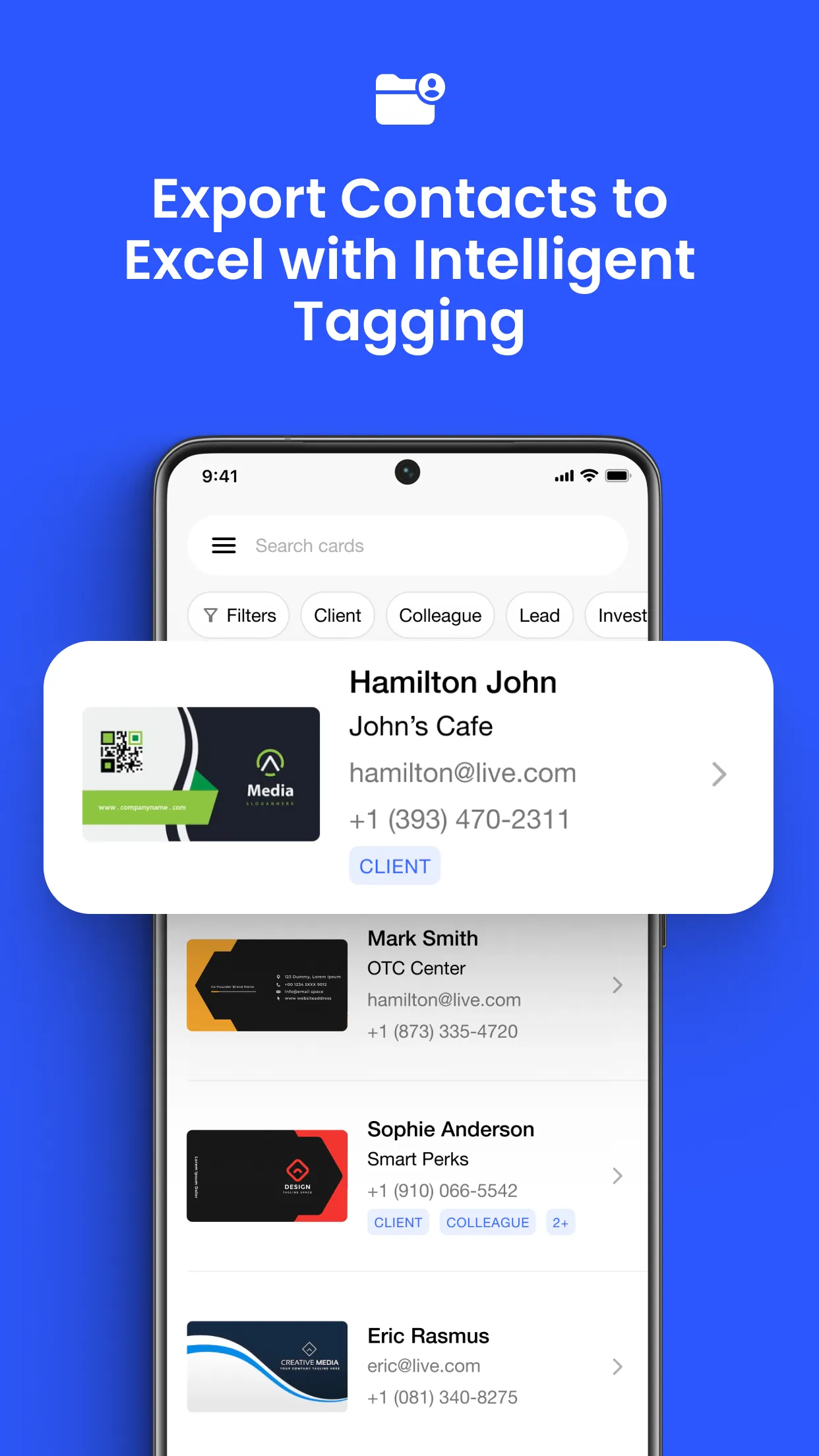 1.2 million professionals have upgraded their business card scanning experience with Covve Scan - join them and go digital today! Enjoy a free trial for 14 days, then unlock unlimited scans through a one-off purchase or annual subscription. ⚡ Unrivaled business card scanning accuracy and speed - Achieve market-leading business card scanning accuracy in over 30 languages and experience the fastest scan times, outperforming competitors like CamCard, ABBYY, and BizConnect....