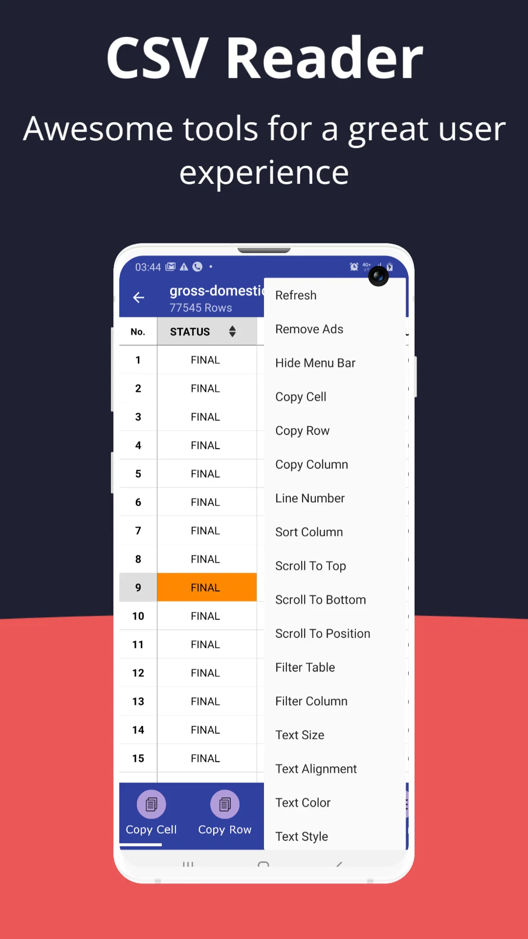 CSV Reader - Simple, fast, and powerful tool for reading csv files. A CSV file is a Comma-separated values file, which allows data to be saved in a tabular format. The mime type for .CSV file is text/comma-separated-values. Comma-separated values files are essential for data analysis and management. Comma-separated values (CSV) file format is used to store tabular data, such as a spreadsheet or database. Each line in a Comma-separated values file corresponds to a record or row of the table, and fields within each record are separated by commas. ...