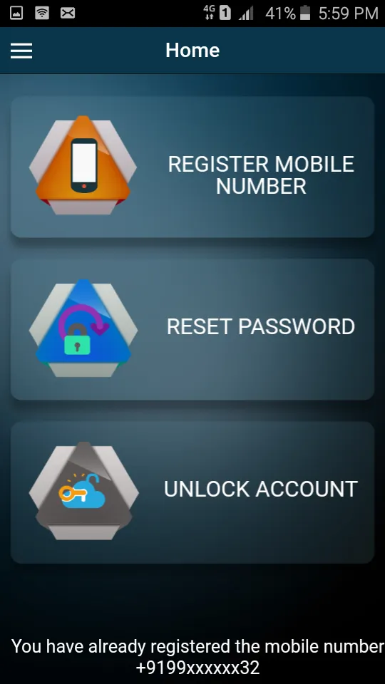 This app will be used to register mobile number, reset user account password and unlock user account.