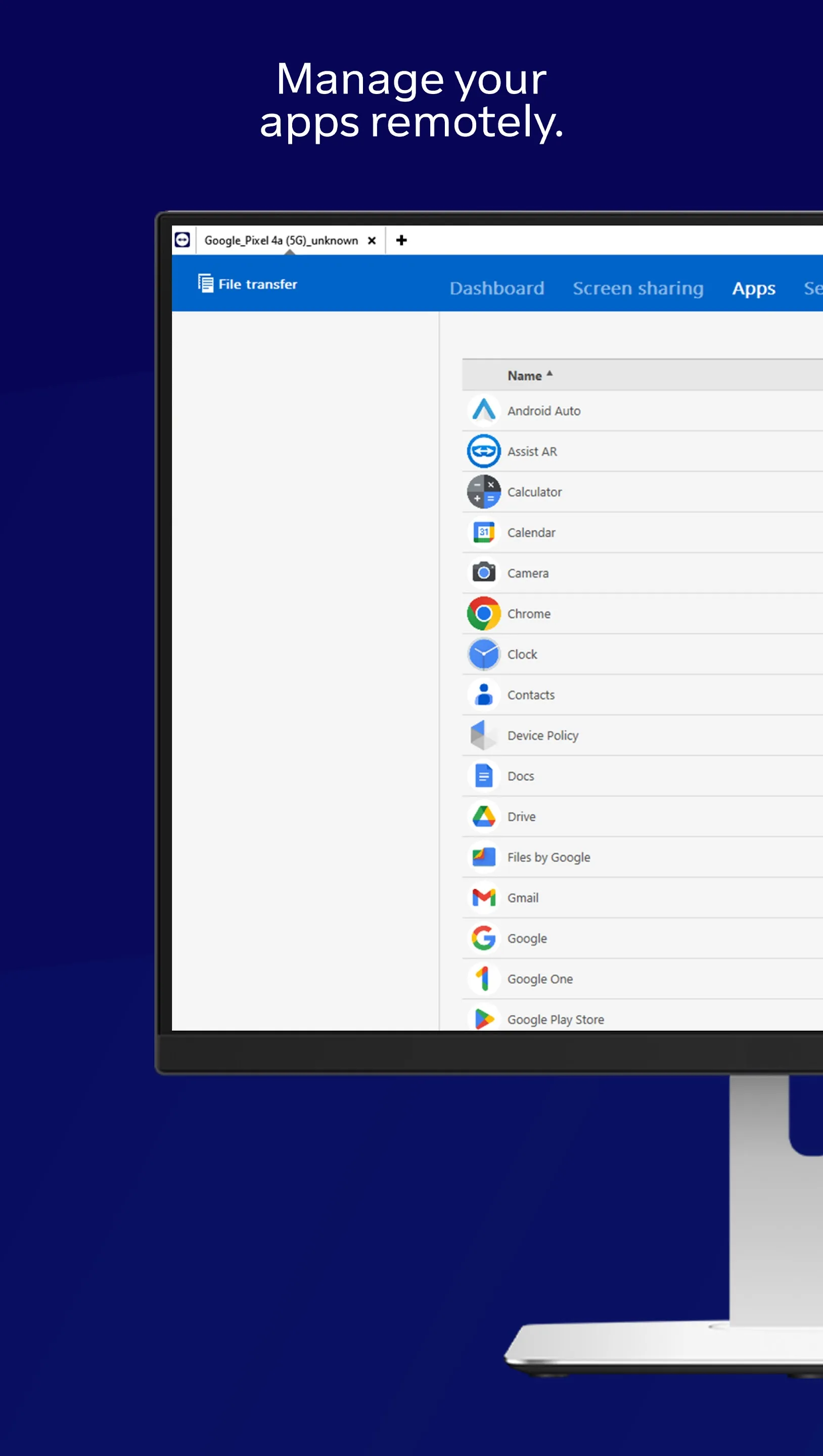 Mirror your Android devices to any computer from anywhere, at any time! Permanently access your unattended Android devices (smartphones, tablets, POS, set-top boxes, displays, and much more). Features: • Remote control • Real-time screen sharing • View device information...