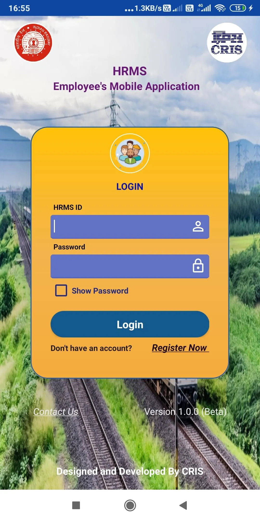 HRMS Employee Mobile Application is Developed by CRIS for Employees of Indian Railways. => To access employees need to register by entering IPAS No / PF No. => An OTP will be sent to their Mobile No (As available with us). Employee must enter to complete registration process. => If Mobile no is not available, Please contact your establishment clerk to furnish to access this application....