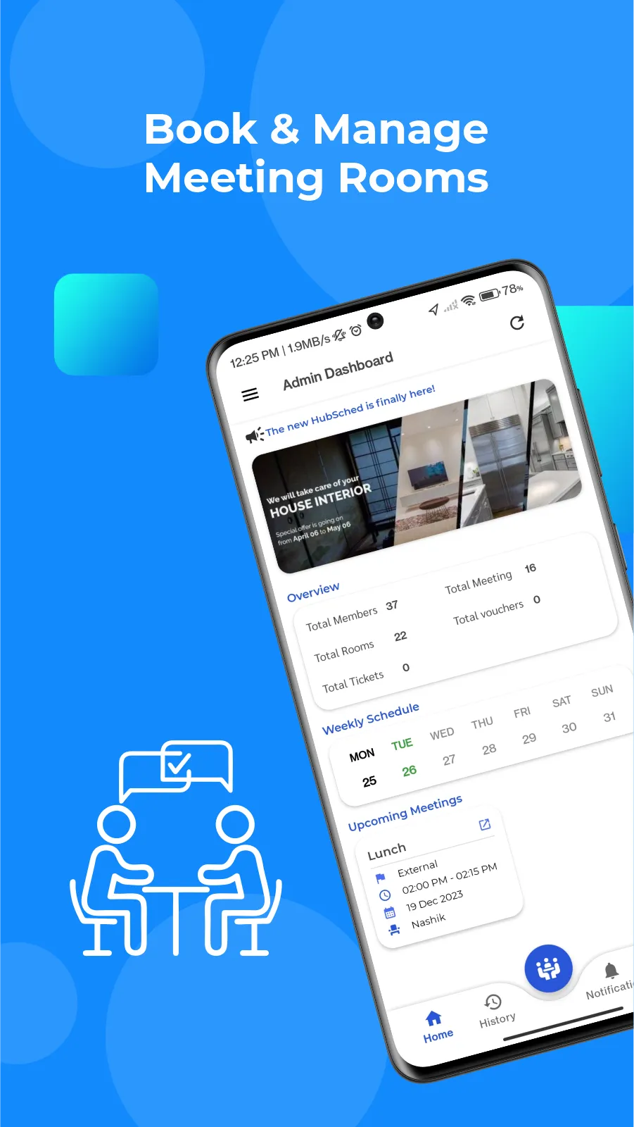 Introducing HubSched: Revolutionising Corporate Management At HubSched, we redefine corporate management with our suite of innovative tools, meticulously designed to streamline operations, enhance productivity, and elevate user experiences. Key Features: Employee List Manage Meetings Announcements Vouchers Tickets Download HubSched Today and Elevate Your Corporate Experience!