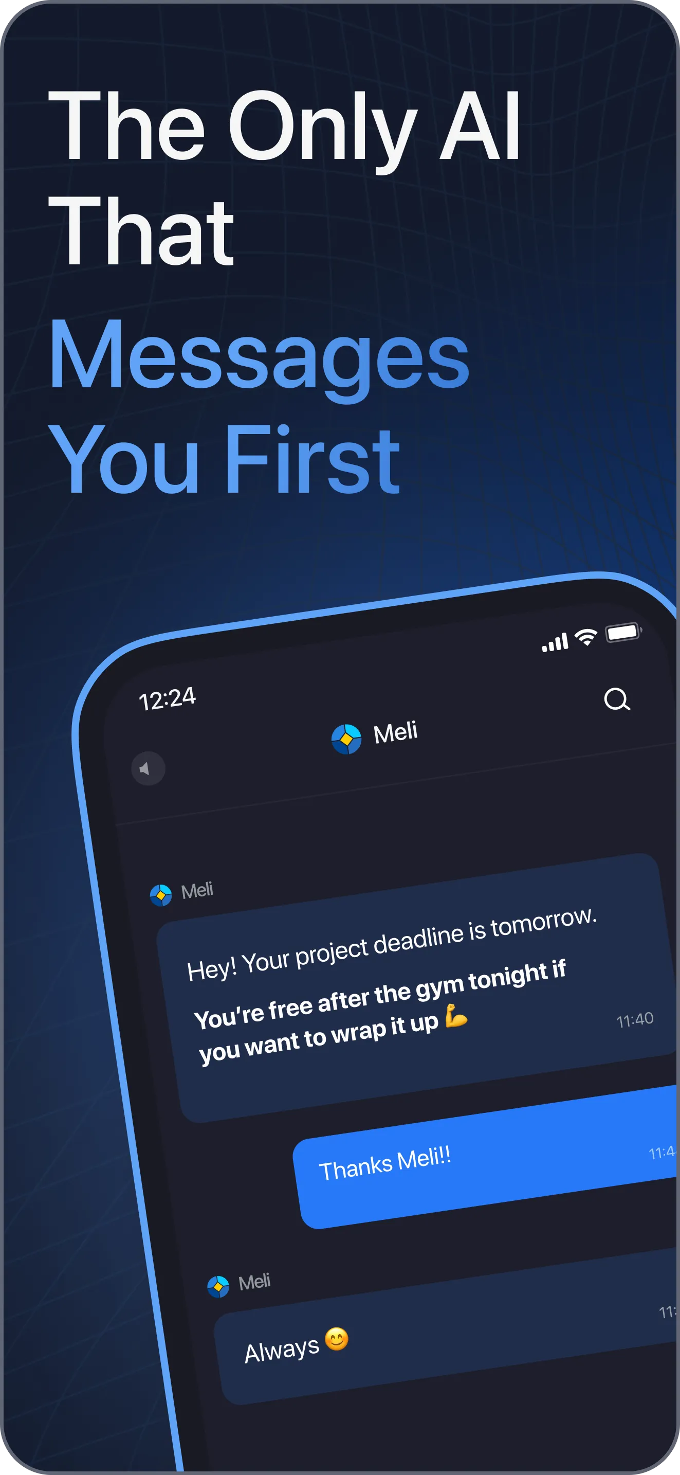Meli is the thoughtful AI that actually thinks about you between conversations. Unlike other AI assistants that reset when you close the app, Meli maintains your complete story. Get an AI partner that remembers your goals, checks in when you need support, and keeps working on what matters to you 24/7. WHAT MAKES MELI THOUGHTFUL ...