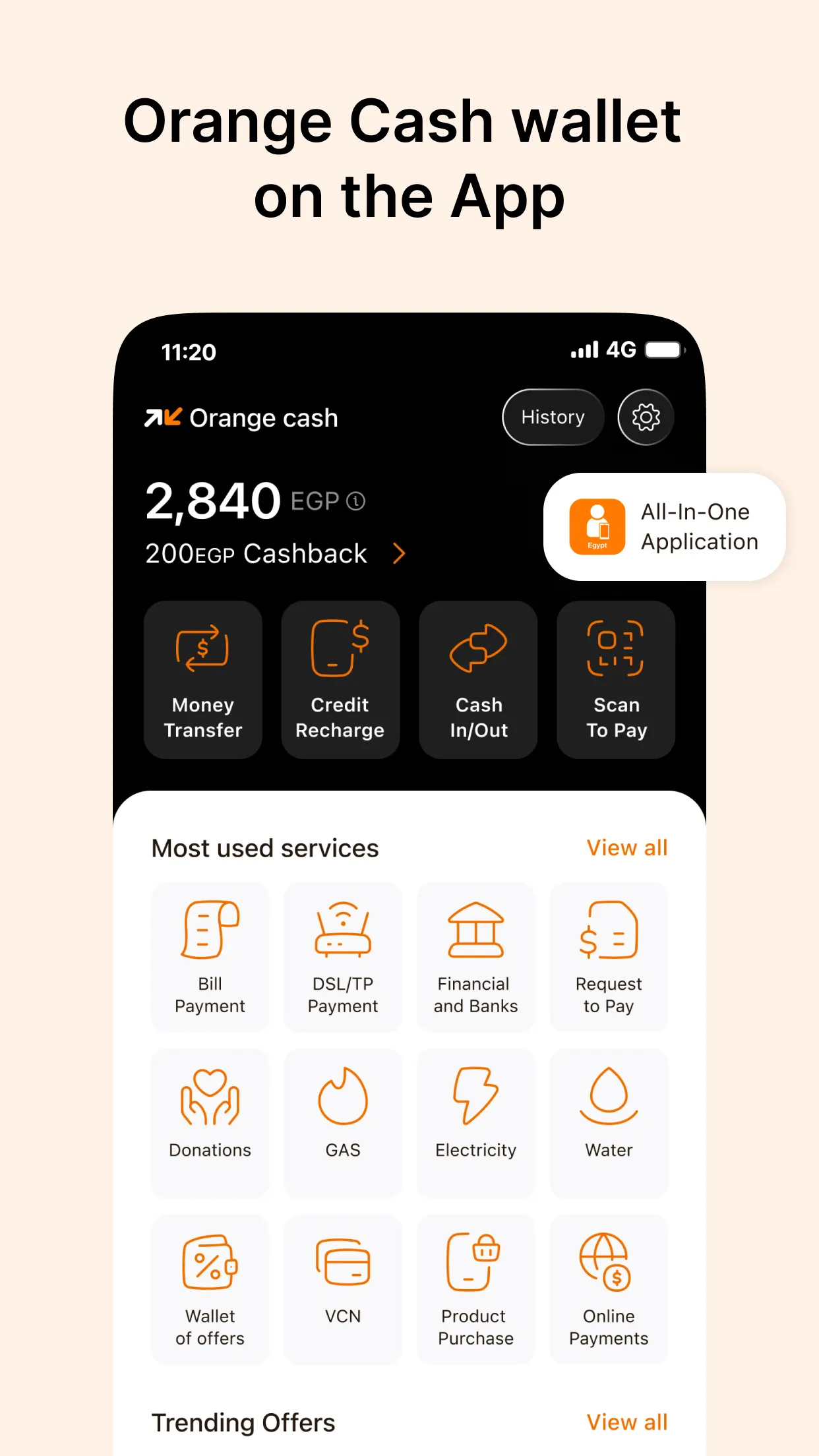 My Orange Egypt and Orange Cash: Your Ultimate Orange Companion Both My Orange Egypt and Orange Cash offer a range of essential services, making it easier for you to manage your Orange account and enjoy seamless digital interactions. Key services include: • Account Management: Easily manage your Orange account, check balances, and view usage. • Recharge and Bill Payments: Easily recharge your mobile or data plan, pay utility bills directly from the app. • Orange Cash Integration: Access all Orange Cash services seamlessly within the My Orange app, including money transfers, mobile payments, pay for goods and services, …etc....