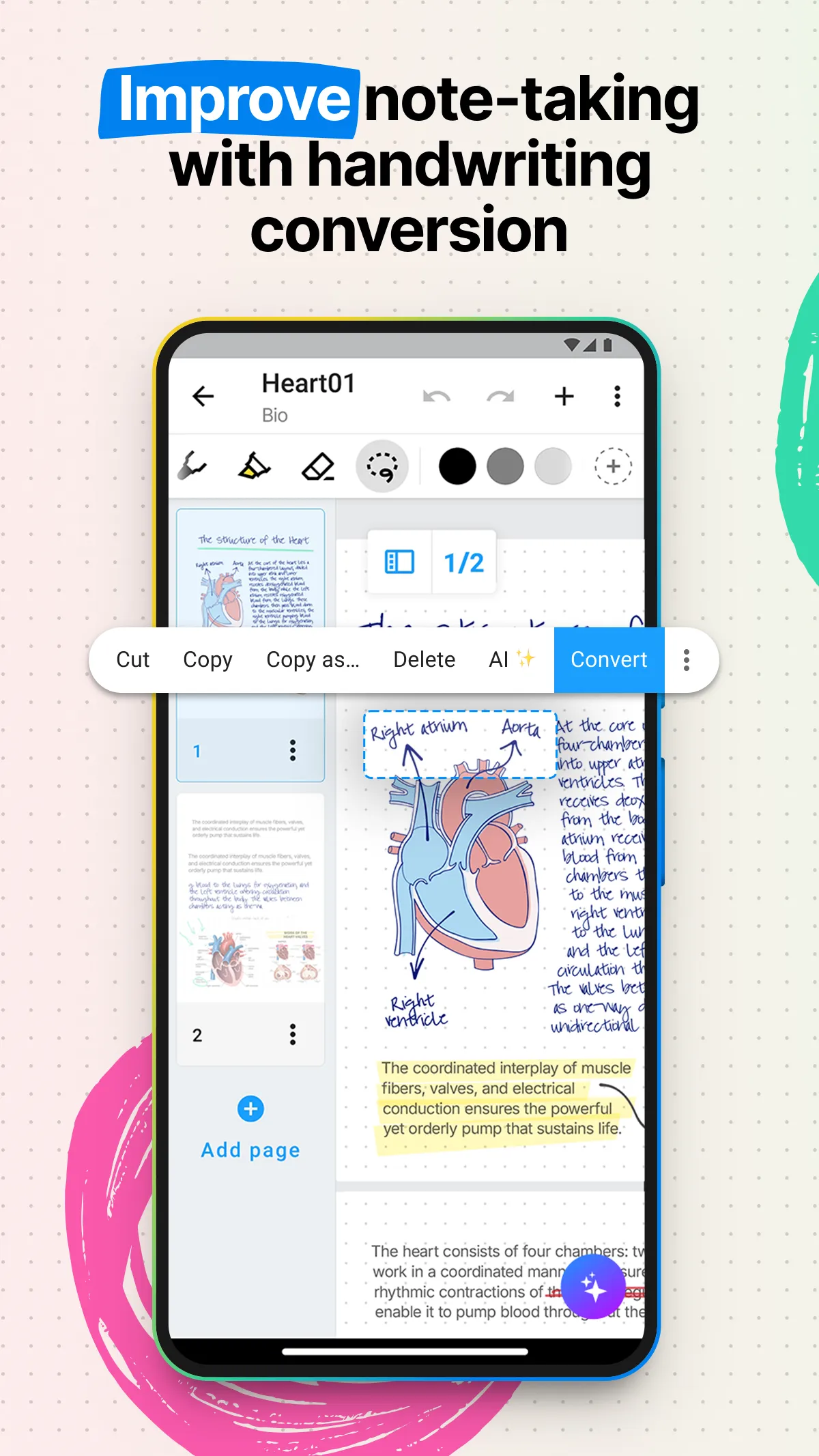 Create stunning notes and professional documents effortlessly by hand, brainstorm ideas on an infinite canvas, and annotate PDFs seamlessly. Powered by the world's leading AI handwriting recognition technology, Nebo offers a dynamic platform where handwriting, text, drawings, diagrams, and images seamlessly coexist on an expandable canvas. Enhance your note-taking experience with intuitive pen gestures, effortlessly converting handwriting and shapes into typed text and precise forms. Nebo understands every word you write in your choice of 66 languages, and works on all platforms - so you can access and search your notes from any device. Enjoy 4 powerful experiences in one app: ...