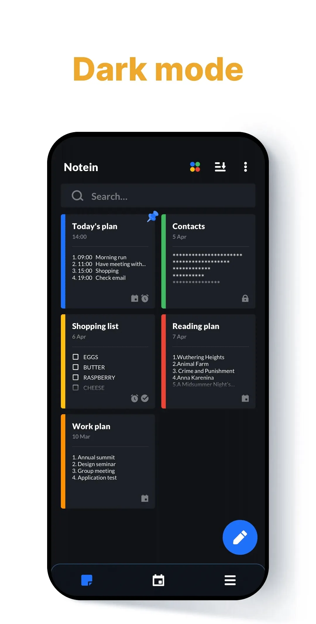Want an easy-to-use notepad for quick note-taking? Want a handy memo pad to make to do lists, shopping lists with reminders? This free note taking app, notebook, and memo pad app meets all your needs! No ads! Notein - Notepad, Notes, Lists is an awesome notes app for android. You can write notes with colorful backgrounds for easy notes management. Sticky notes widgets, note reminders, note lock, etc., all make note-taking so simple, quick, and safe. Take notes just like using pen and paper. ...