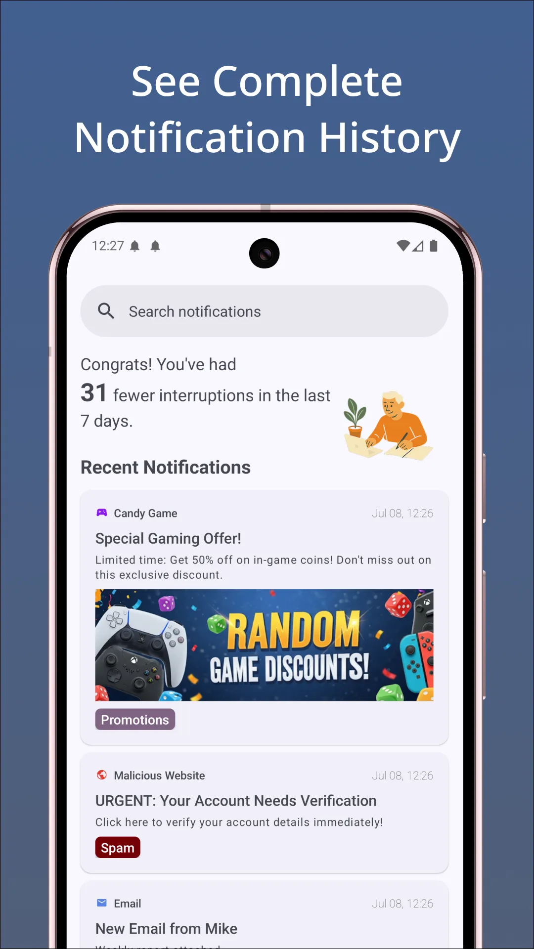 Accidentally swiped away something important? Notifiltr keeps your complete notification history log so you can always find, restore notifications, and download notification image. 📱 Complete Notification History Log • See every notification your phone received, even dismissed and deletes ones • View and download notification image from social media and chat...