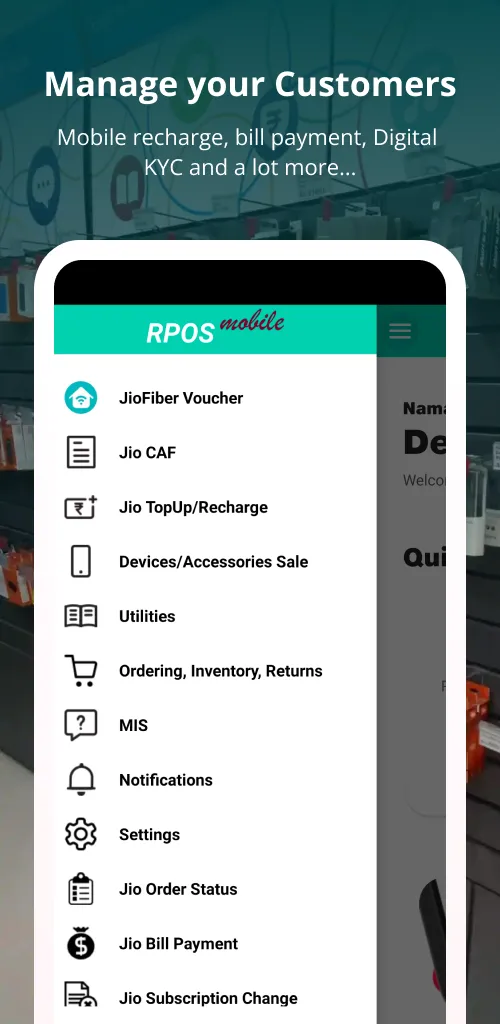 RPOS Mobile Now you can manage your Jio business on the go. An app-based platform, RPOS Mobile is equipped with features and functionalities that help manage - from onboarding and recharging to earnings, all in one place. Multiple benefits of RPOS Mobile app ...