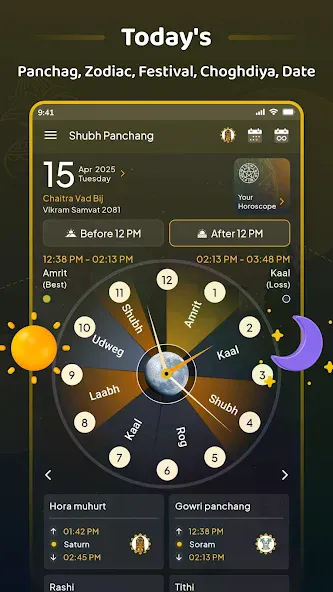 Stay connected with the cosmic rhythms through Shubh Panchang, the trusted Hindu calendar app providing daily Panchang updates: Tithi, Nakshatra, Yoga, Choghadiya, plus sunrise-sunset timings and Janmrashi-based horoscopes. Ideal for anyone seeking to find the best times for auspicious events, festivals, and spiritual planning. Key Features: Traditional Hindu calendar views with detailed festivals overview ...