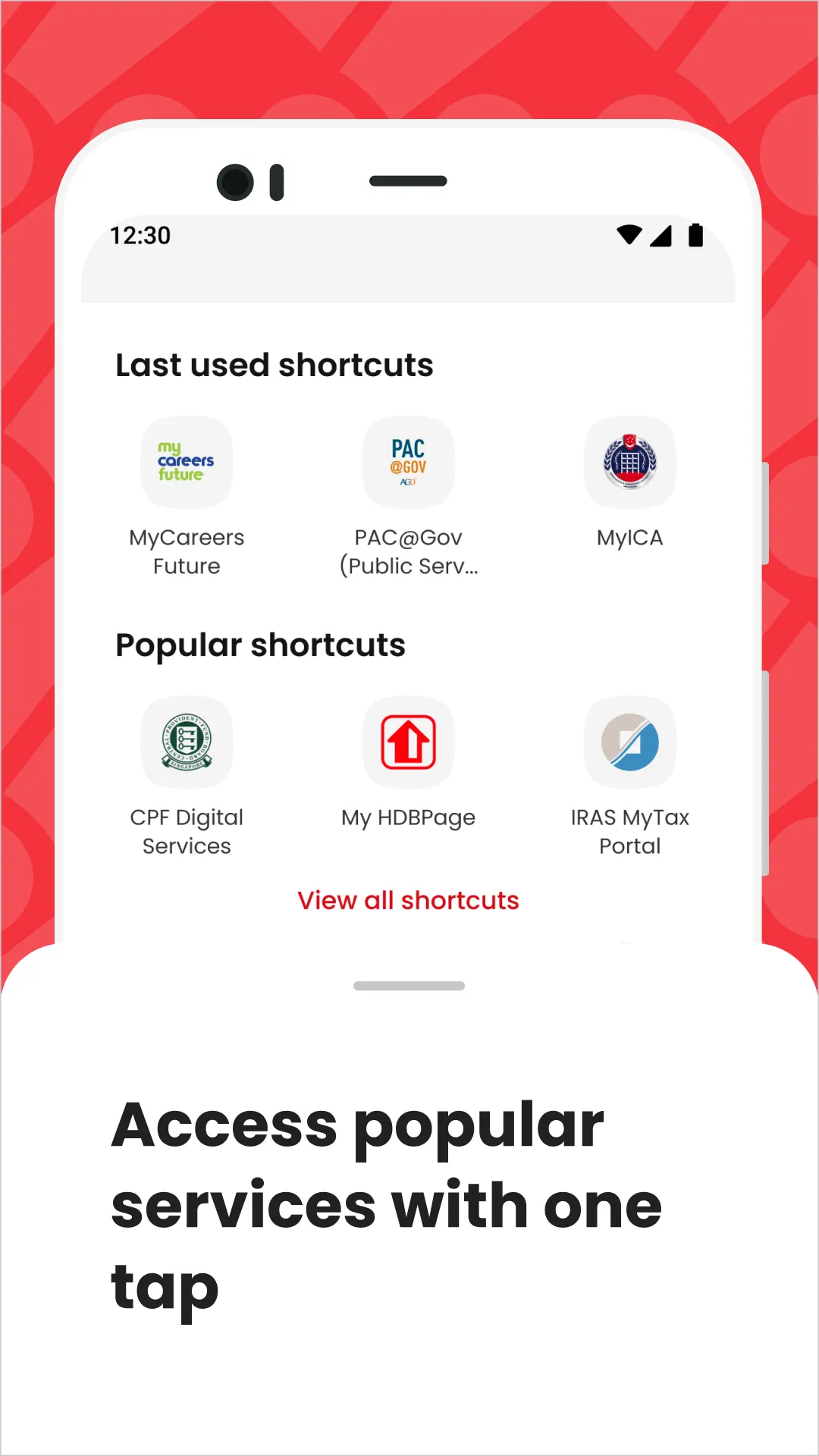 Log in within seconds using your fingerprint, face or 6-digit passcode! TRANSFORM THE WAY YOU TRANSACT • View your information from government sources in one place ...