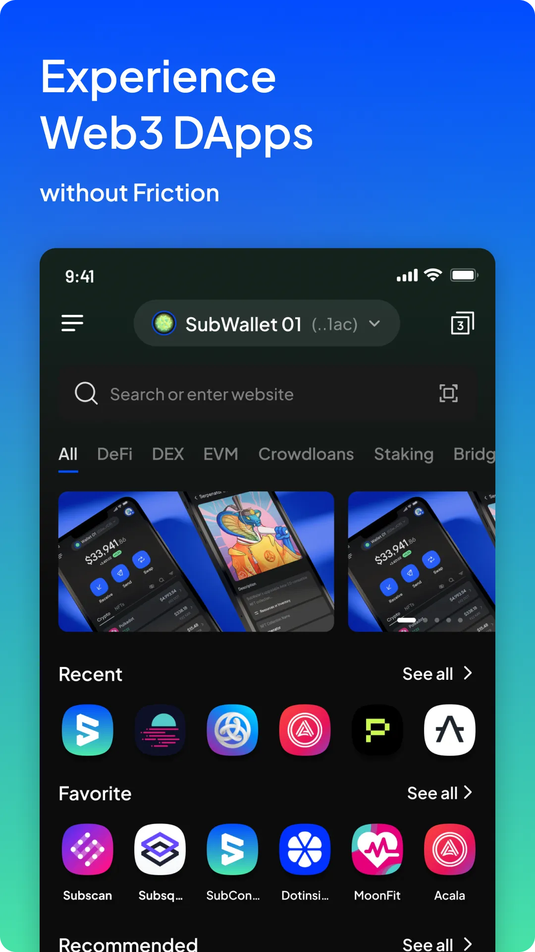 SubWallet is the comprehensive non-custodial wallet solution for Polkadot, Substrate & Ethereum ecosystems. Built on top of Polkadot {.js}, SubWallet focuses on improving UX & UI. We envision a crypto wallet as a Web3 multiverse gateway through which users can enjoy multi-chain services with utmost ease and absolute security. Connecting and using blockchain-based applications is smoother than ever with SubWallet Browser Extension & SubWallet Mobile App (Android & iOS). Our web wallet is coming soon! SubWallet Crypto Wallet Key Features 1. Manage multi-chain assets on 150+ networks with 380+ tokens supported....