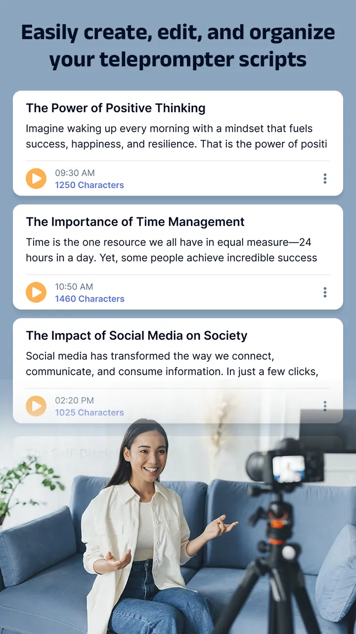 Teleprompter: ScriptFlow Video – Read Scripts Smoothly While Recording 📽️ Teleprompter: ScriptFlow Video is the ultimate teleprompter app for content creators, vloggers, educators, speakers, and professionals who want to read scripts while recording videos effortlessly. Say goodbye to memorizing long speeches or breaking eye contact—now you can record smooth, professional-quality videos with perfect delivery every time! 🎯 Key Features to Elevate Your Video Creation: ✅ Floating Teleprompter Overlay...