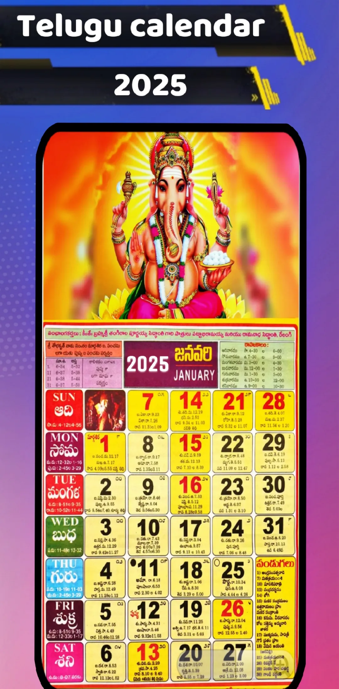 తెలుగు క్యాలెండర్ 2025 - Telugu Calendar 2025 - Simple and Best Calendar app for the year 2025 for all telugu Speaking people across the world. Important feature of the app, ...