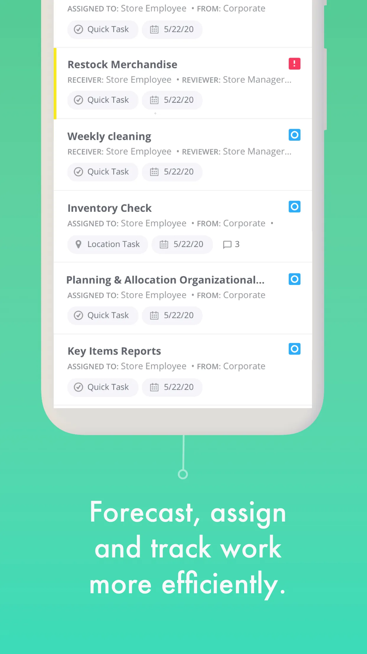 ThinkTime provides a clear, consistent and user-friendly platform for every task - from complex corporate initiatives to simple to-do items. Each assigned task appears in a personalized dashboard with a priority level so associates know exactly how to organize their time. Field and corporate leaders can balance the flow of work week-to-week so no store team is overloaded. Task Management Advanced tools to forecast, assign and track work more efficiently Store Audit...