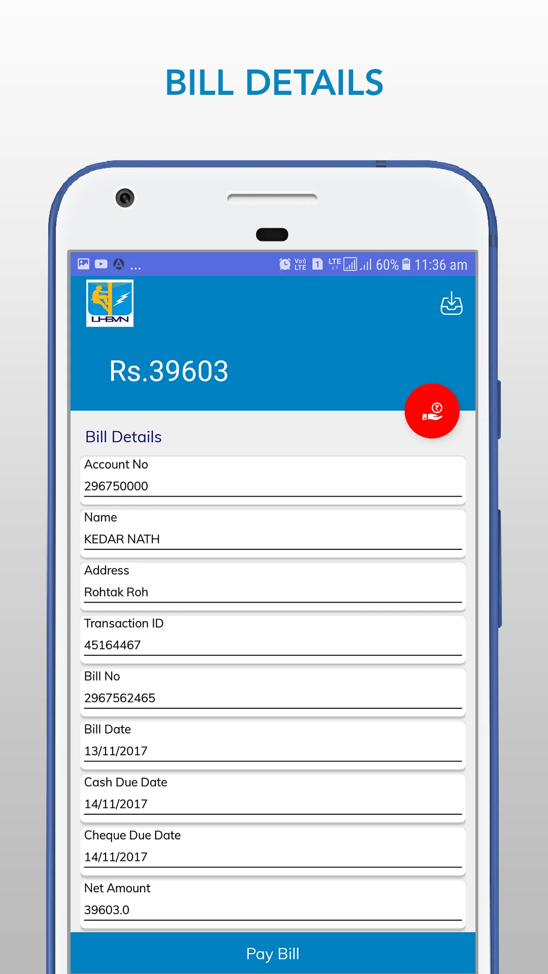 Uttar Haryana Bijli Vitran Nigam consumers can 1.Pay their bills 2.View their bills 3.Make payment through Debit card, Credit card and Net Banking service any time and anywhere. Consumer can also View their Payment History and View their old Receipts as well. Consumers can also lodge complaints related to E-Payment Service through this Mobile Application.