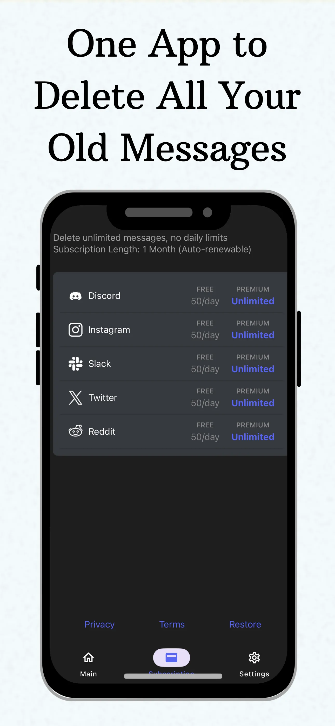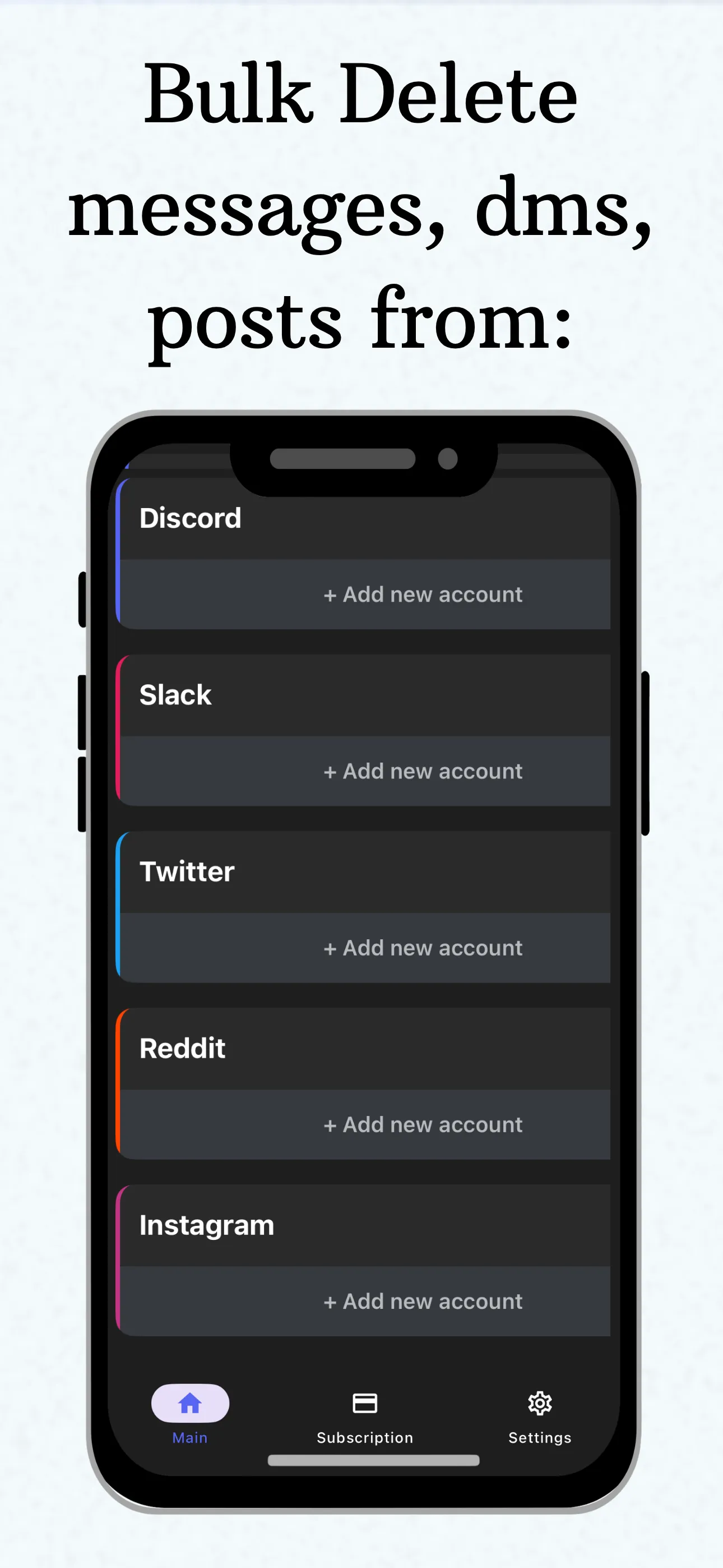Unpost: Bulk Delete, Mass Delete, and Auto Delete on Discord, Slack, Twitter, Reddit and Instagram Unpost is your all-in-one message and post deleter for Discord, Slack, Twitter, Reddit, and Instagram. Instantly remove outdated conversations, posts, tweets, comments, likes and more—without the hassle of manual cleanup. Take control of your digital footprint and enjoy a clutter-free experience across multiple platforms. Why Choose Unpost? Privacy First: We encrypt and store all credentials locally—nothing is kept on remote servers. Versatile Deletion Methods: Bulk delete, mass delete, auto delete—pick the method that suits you best....