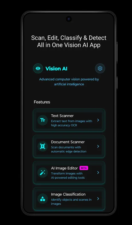 π€ Vision AI β Smart Scanner, Photo Editor, OCR & Object Detector Vision AI is your all-in-one AI scanner and smart vision assistant. Easily scan documents, extract text, edit photos, remove backgrounds, detect objects, and scan barcodes β all inside one fast, lightweight, and 100% free app. Whether you need to digitize documents, read text from images, create passport photos, enhance the quality of old photos, restore vintage pictures, or identify objects around you, Vision AI delivers powerful AI features with exceptional accuracy and speed. ...