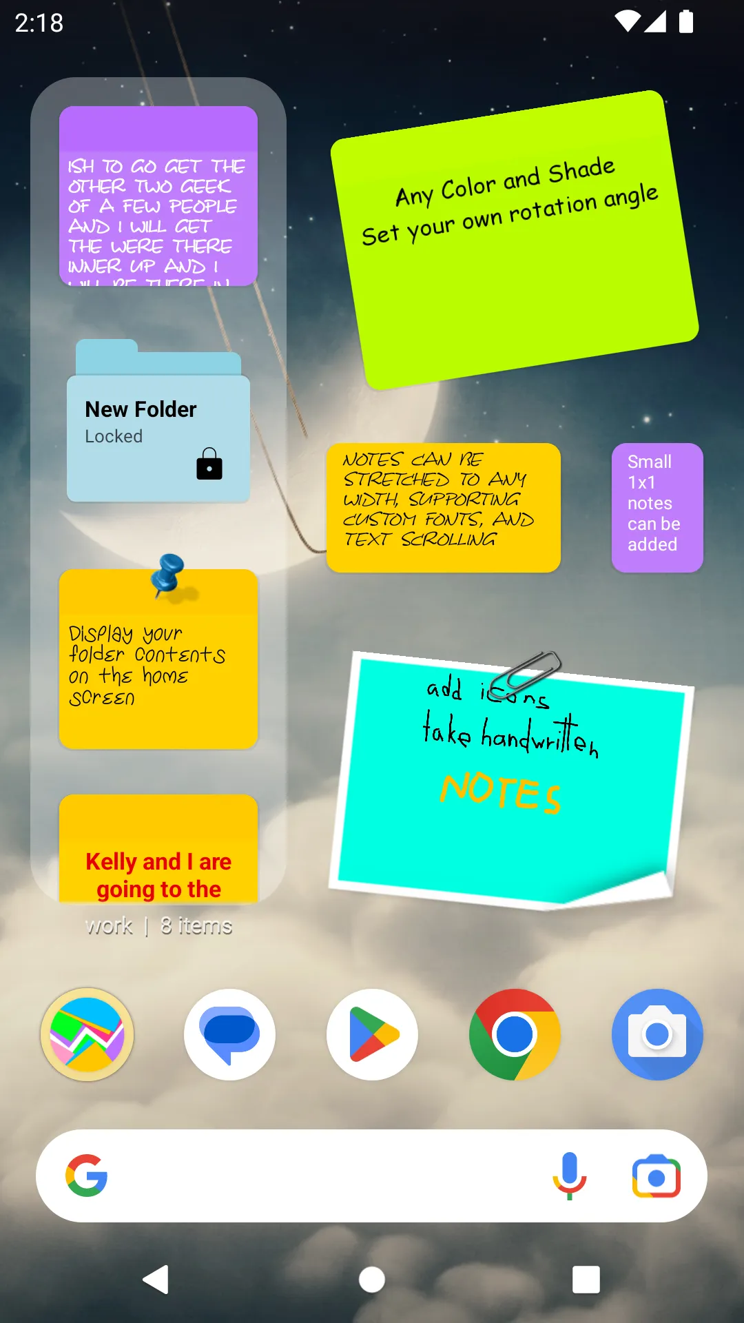 needed an app to stick notes on the main screen. this is good enough. free version is ad free with adequate features. if only it allowed notes of all colours.