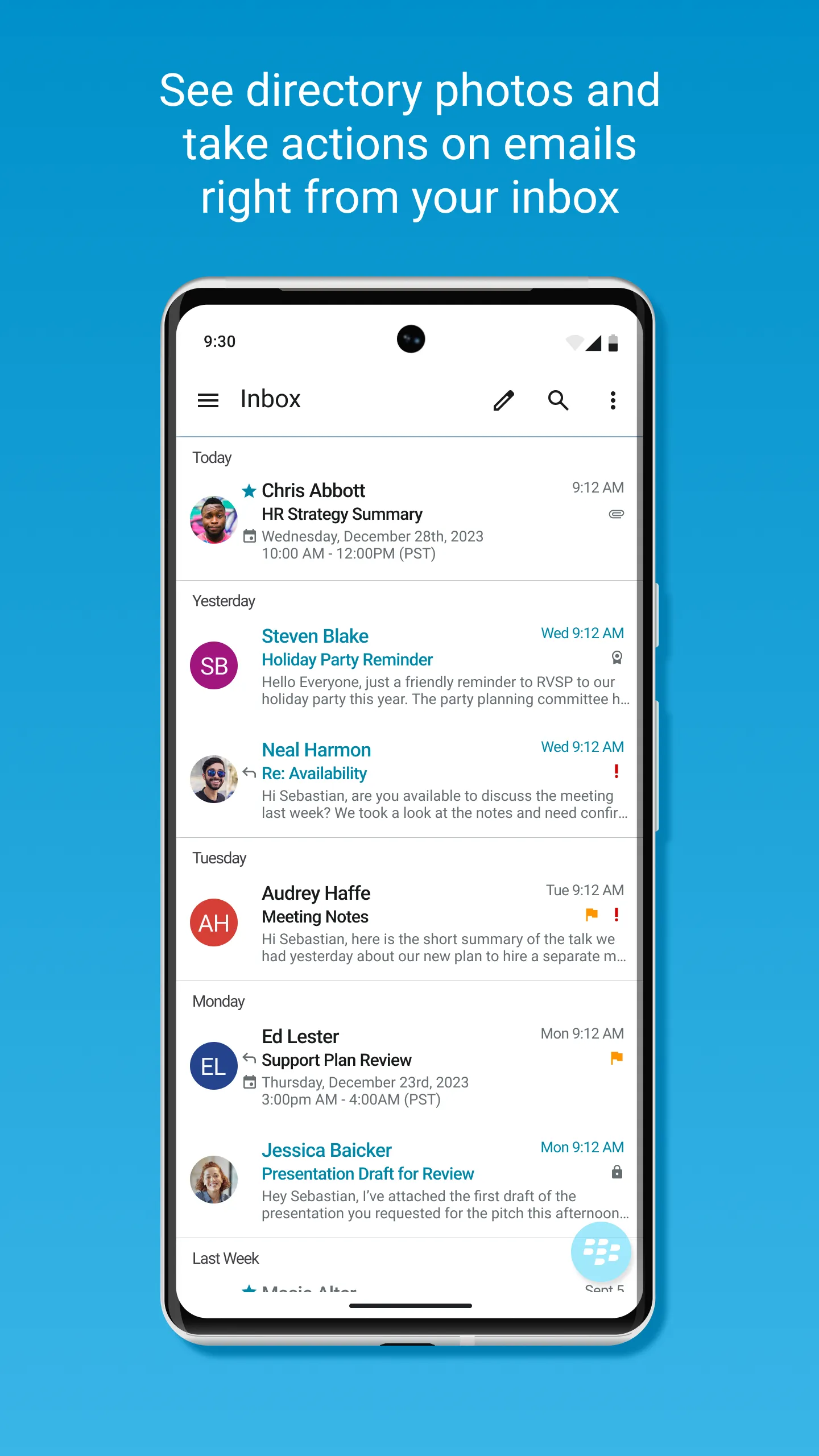 *** Contact your IT administrator for any help with setting up BlackBerry Work *** Take care of business simply, elegantly and securely with BlackBerry Work. Stay on top of your business email, schedule and join meetings, and manage your contacts with an easy to use, all-in-one app. BlackBerry Work delivers a personalized business experience. See your colleagues’ photos in your email. View online availability to chat everywhere you work - in email, a calendar event and on their contact card – a capability unique to BlackBerry. Quickly navigate among your business apps using Launcher. Switch easily between composing an email, adding a contact, or scheduling a calendar event with quick action buttons. And always know that your personal privacy is protected without intrusive geo-location capabilities. ...