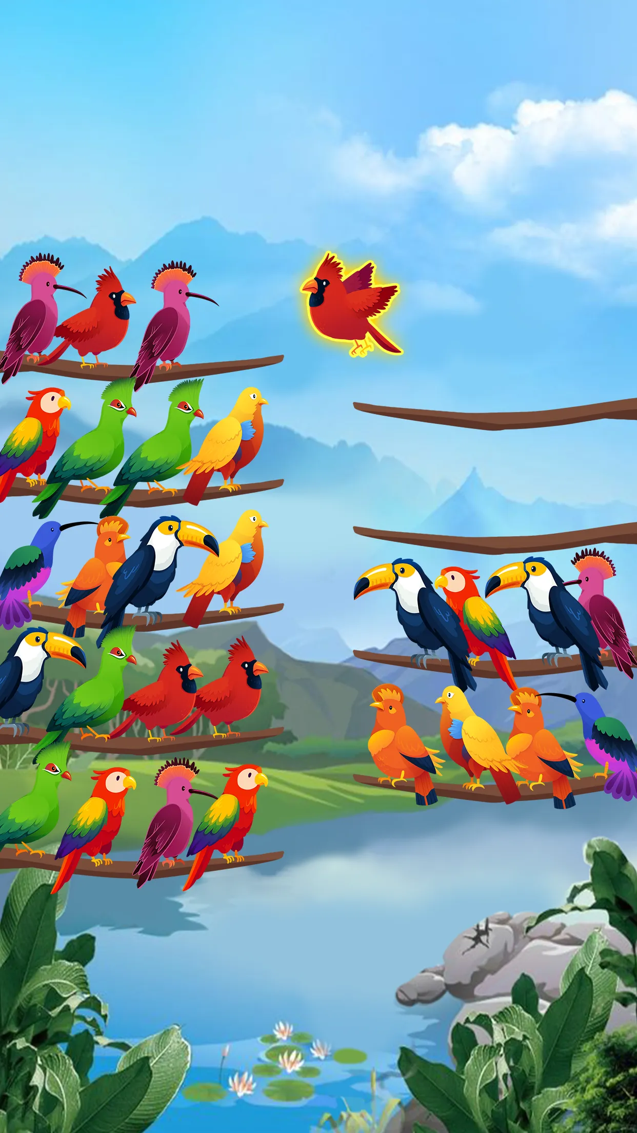 Bird Sort - Color Puzzle - Sorting puzzle game with a unique art style, a collection of colorful birds. The bird games required focus, skills, and strategy to solve the color sorting game by matching colorful birds. Test your intelligence by solving this sort of puzzle game 🧠 HOW TO PLAY - Move the bird by touching it and then touching the branch you want it to move to. - Arrange the birds using the fewest possible moves! - Try not to get stuck. If you get stuck you can just go back step by step using the back button or restart the level at any time or you can add a twig to make the color bird sort easier. With the increase of colors and birds, the difficulty of bird sort puzzles will gradually increase. Rich and interesting sort color bird games levels are here waiting for you to challenge!...