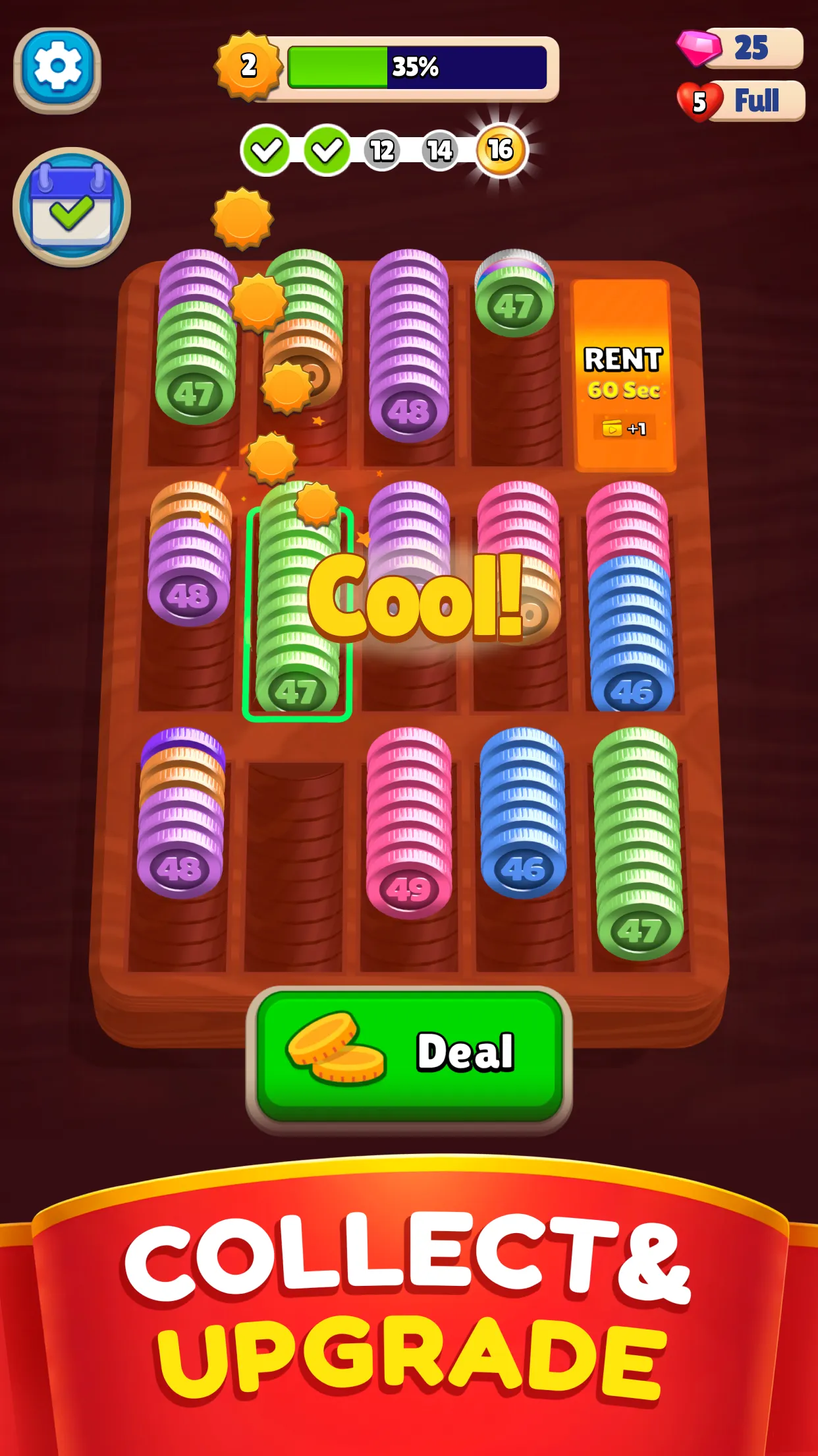 SORT YOUR WAY TO HAPPINESS 😃 Master mergers, ready those fingers and get to matching in 3…2…1! This fun sorting puzzle features colorful coins that need to be matched up in their slots and then merged together to clear the playing field, making way for more. Bright colors, simple graphics, and lots of boosters ensure that your brain can focus on what it does best: noticing patterns and finding unique ways to shuffle everything around in order to win. MASTER THE MATCH 🧩 ...