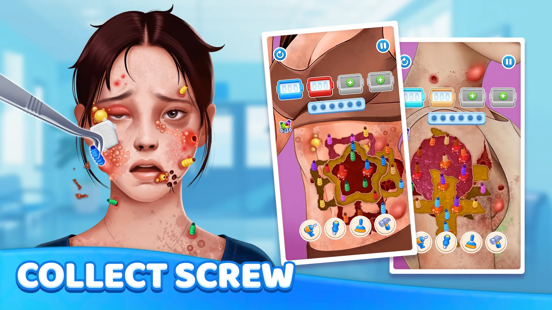 Love the challenge of a good screw game? Fascinated by unraveling mysteries and solving intricate puzzles? If your heart says Yes, then Screw ASMR is the definitive logic puzzle game for you! Step into the uniquely satisfying world of Screw ASMR, where beauty meets infestation, and maggots are the enemy. Hidden beneath the surface, these persistent invaders nest deep within body zones, clinging like screws, pins, nuts, and bolts. This isn’t just a screw puzzle , it’s a transformation journey from irritation to perfection. Each level features beauty model, troubled by larvas, maggot oddly placed screws, pins, and bolts. Your task? Carefully unscrew and clear these mechanical intrusions from various facial and body zones. From face, leg to limbs and more to reveal smooth, beautiful surfaces beneath. It’s puzzle-solving with a makeover twist, where every satisfying pull brings out hidden beauty. ...