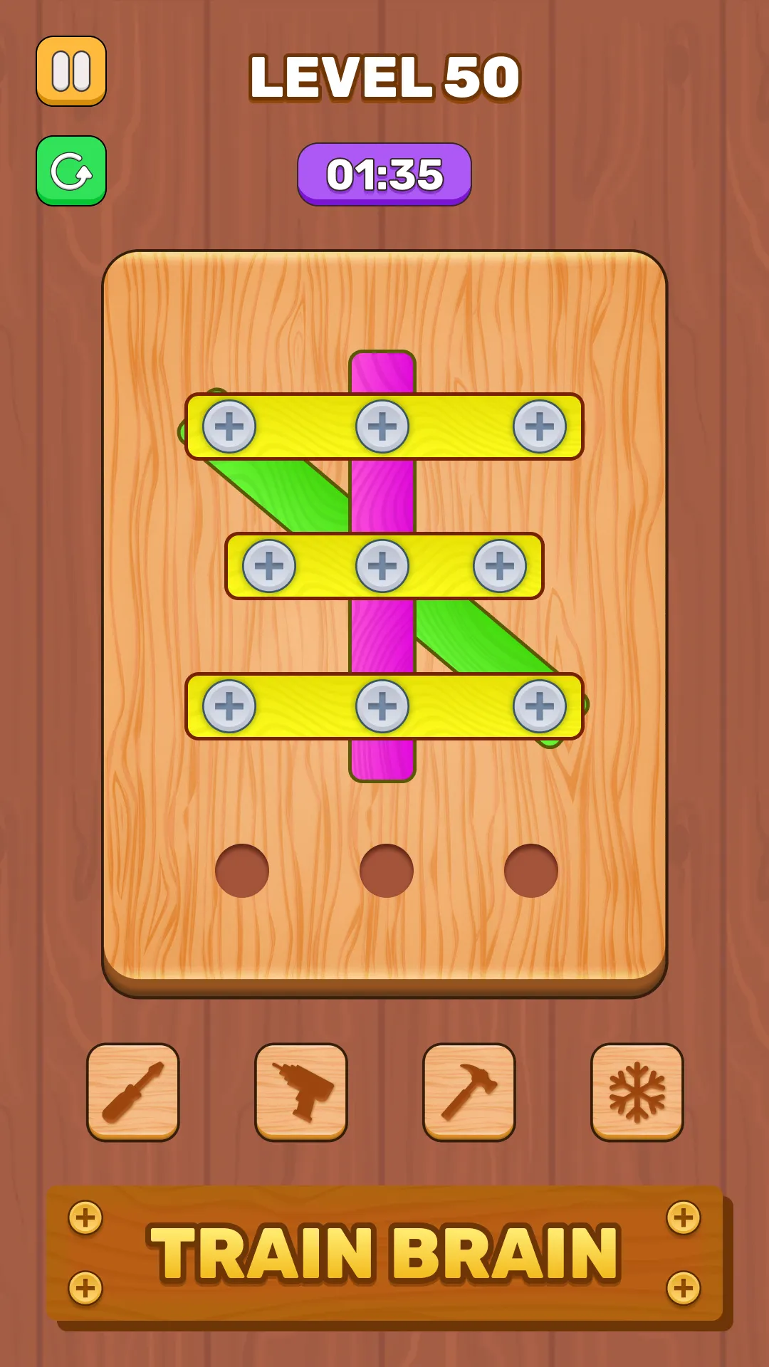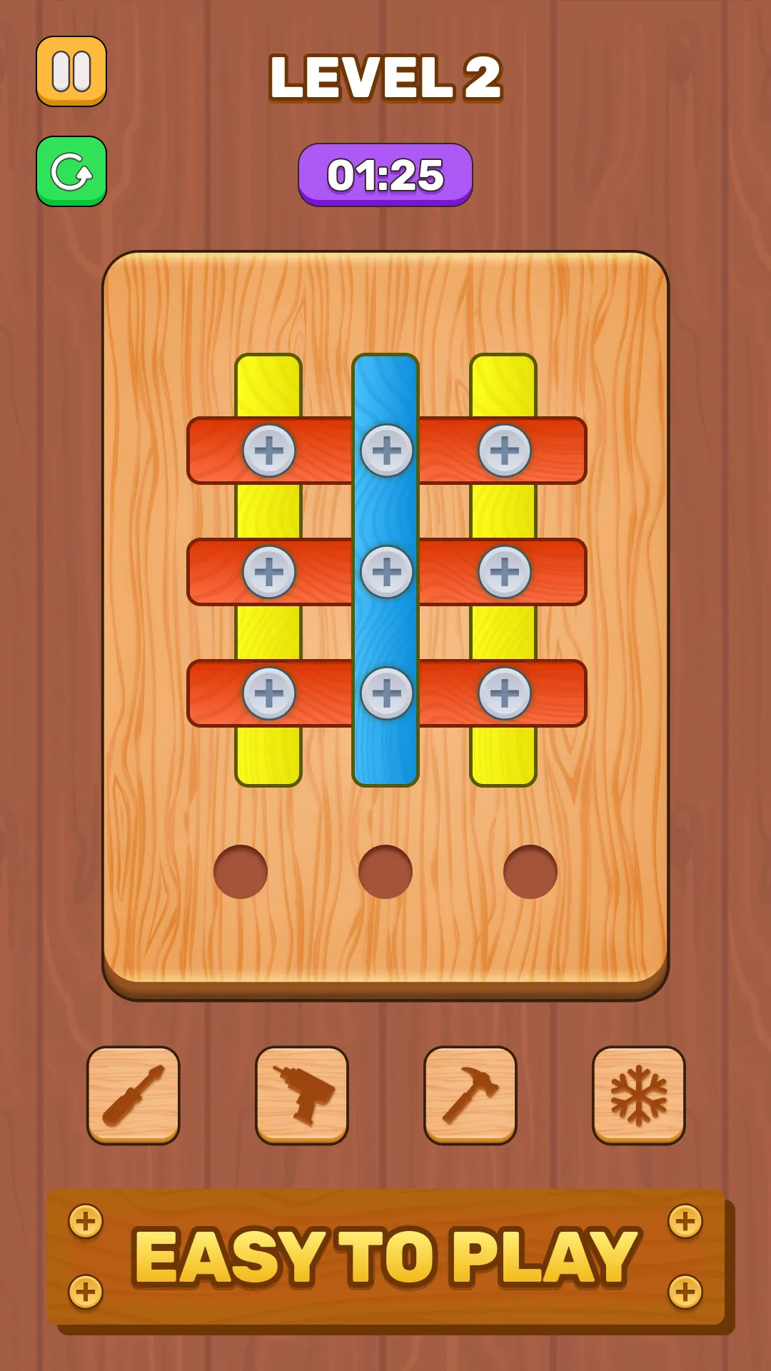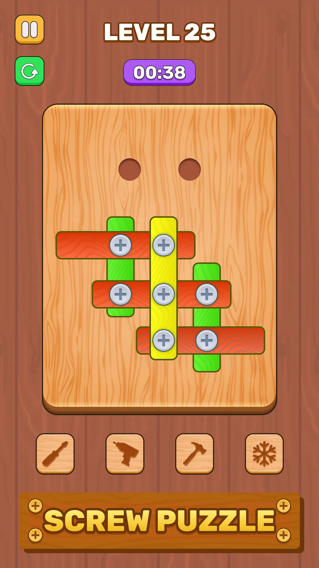 Screw Puzzle - Wooden Puzzle is an exciting brain teaser that combines relaxing gameplay with challenging logic puzzles. Designed for puzzle lovers, this casual game features wooden screw mechanics, sorting puzzles, and brain-training challenges that will keep you engaged for hours! Enjoy smooth animations, realistic 3D graphics, and engaging sound effects in a calming yet mentally stimulating environment. Every level is a test of your problem-solving skills and creativity, designed to improve focus, logic, and attention. 🛠️ GAMEPLAY: • Tap on any bolt to move the colored nuts...