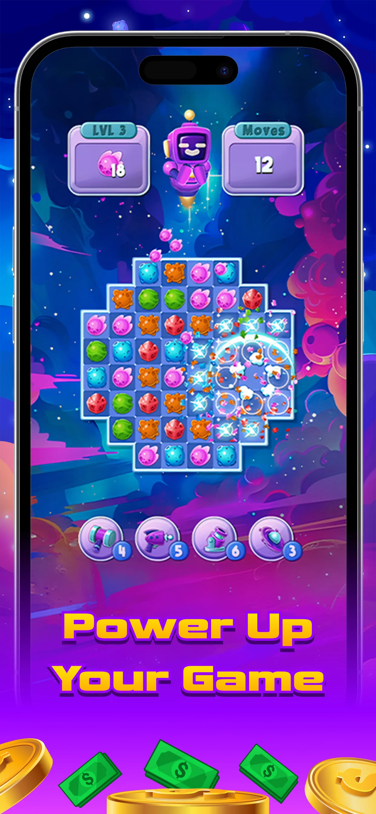 Welcome to Space Glow: Money Game – where cosmic puzzles meet real rewards! ✨ Dive into a galaxy of fun by matching colorful asteroids, comets and stars, and win real cash prizes as you explore the depths of the universe! 🚀 With 100+ exciting levels, Space Glow is a relaxing yet thrilling match-3 puzzle designed to keep you entertained while unlocking rewards. Match, blast and clear vibrant levels while earning real cash rewards. Can you rise to the top and claim your fortune? 🌠 ✨ Why You’ll Love Space Glow: ...