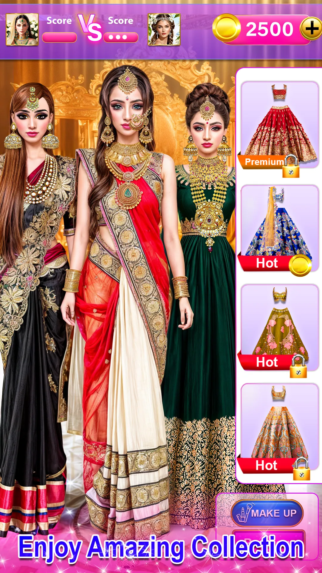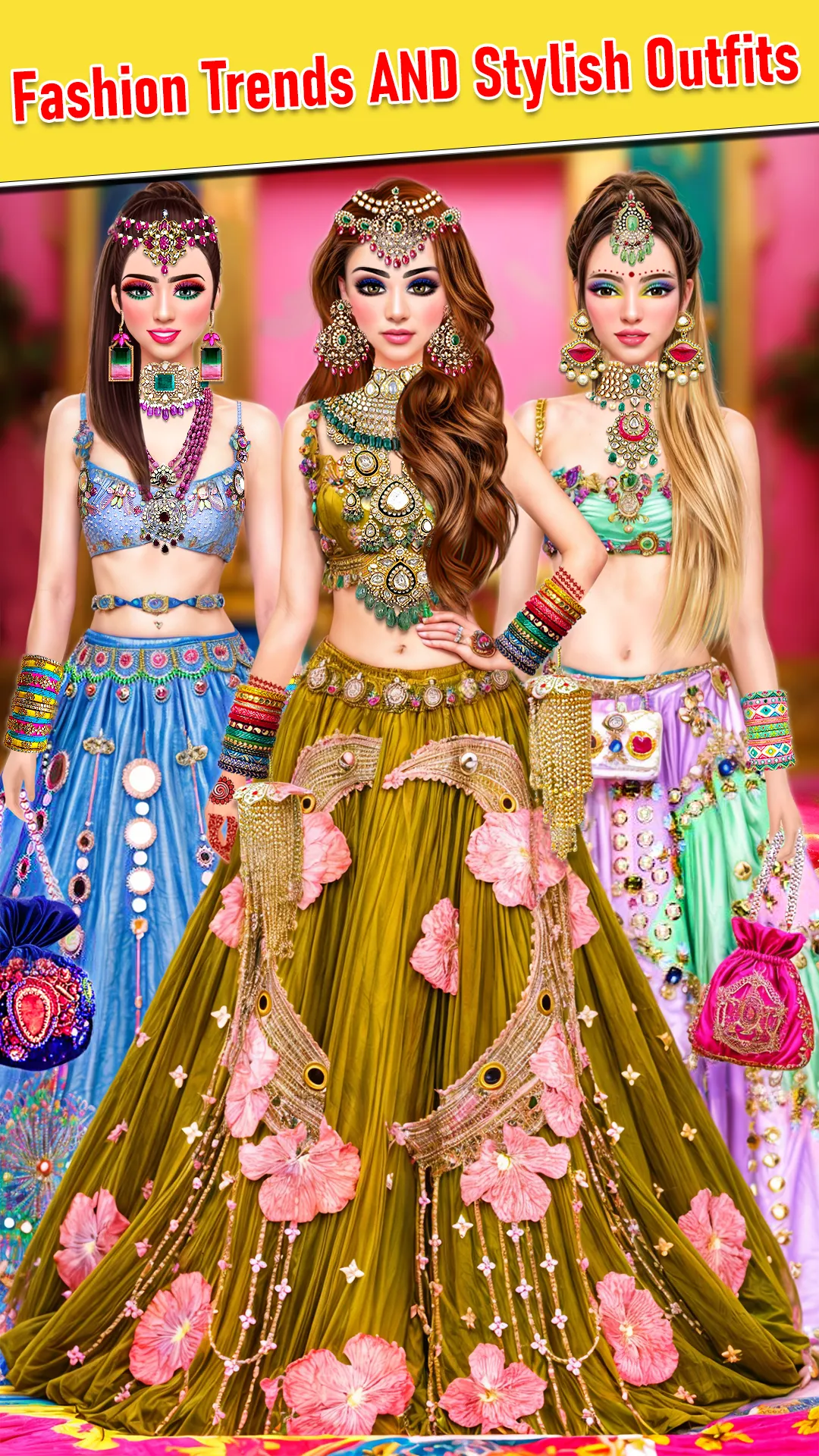 👋Welcome to all baby girl fashionistas! Step into the diverse and vigorous world of Indian weddings with the splendid "Indian Dressup Game." Indulge yourself in the lavish and vibrant culture and limitless beauty of Indian weddings, where you can prepare your model with scintillating outfits, glamorous sarees, and spectacular makeovers. Kick-start your summer fashionista 2024 career with our girly Indian culture-themed fashion and wedding game and let the world visualize your inner fashion artist. Modes: Choose from these enchanting modes designed to put your inner girly fashion artist in front of the world through flawless transitions. -Indian Bride wedding dress up games - Indian Designer fashion dresses for dolls -Indian saree for Fashion Girls -Indian Party Makeup dress up game Enter the mystical world of doll dress-up and make-over where you can do a baby girl princess make-over. Every single mode offers a unique platform to explore your creativity. This gives you a chance to put different hairstyles, blush-on, dresses, sarees, make-up, jewelry, and other accessories and stuff together and give your bride character the best bridal look and make-over. 👑...