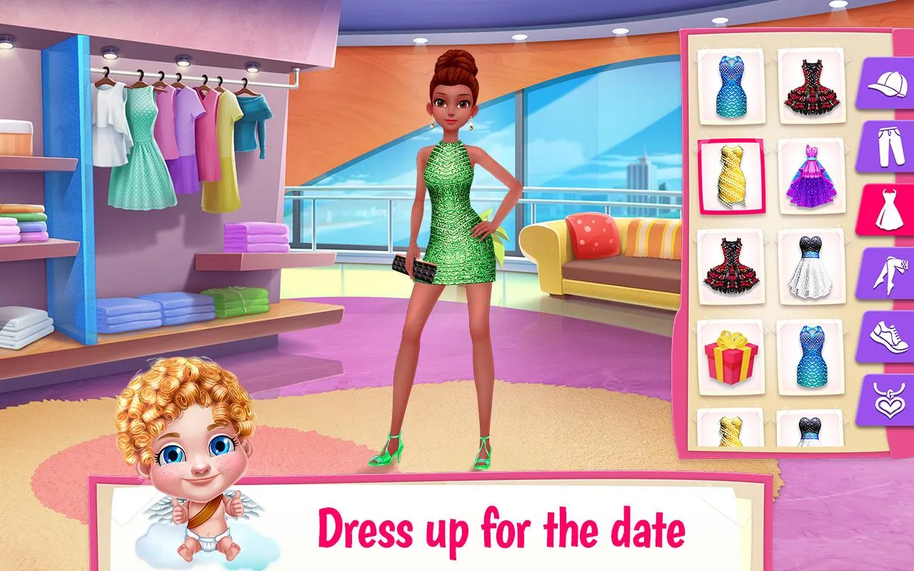 Smack! That’s the sound of tons of new guys and girls experiencing their first kiss - thanks to you, you suave little Cupid, you. In this love story game, you get to be a matchmaking angel and help people fall in love like a boss. Dress up your customers and give them makeovers at the salon, dance classes, kissing training - anything to make sure they’ll end their date with a true love’s kiss. Love is in the air, in this romantic love story date game! Dress up with a bow and arrow and a hot pair of wings, and start spreading the love. Show your customers you’re the love pro they desperately need. Some of them are, shall we say… a little difficult to work with. It’s your job to get them ready for love. Give the girls and guys makeovers, hairstyles at the salon, and dress them to impress. Make sure their dates are perfect, and most importantly - get them to that first love kiss! Features: > Make the girls stop traffic with their stunning new style and beautiful manis at the salon. Take them to the spa so they’re refreshed before their big date....