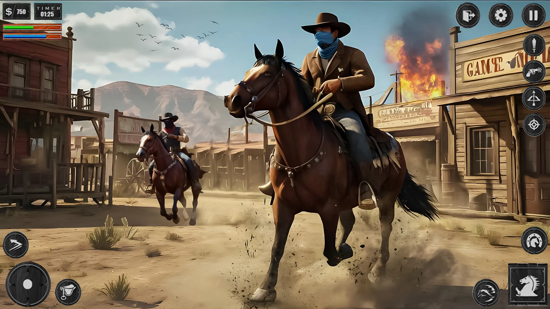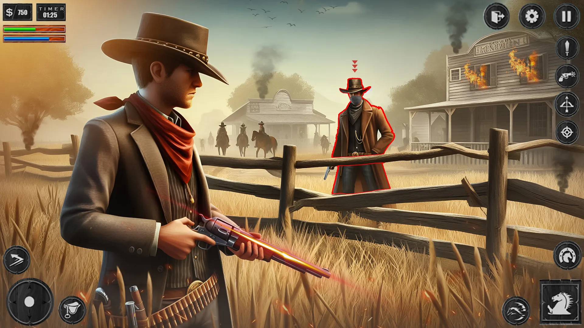 Time to show real technology Play the best Wild West Mafia Redemption Cow 2023 free shooting game of western era. Get a chance to use amazing weapons of that time and show your shooting skills to the world. Go back to the old western era where there is no mercy and you are on your own in these western games. Go on a hunt of Gold but beware of your enemies who are on their way to snatch it before you reach in free shooting games 2023. Don't let them take what is yours. Fight those enemies and make sure no one survives otherwise you'll be in trouble in sword fighting games 2023. Like playing action games especially with awesome survival missions of gun games encounter fps? Then download and accept the challenge to survive in this Western themed gameplay! Fight like a hero sheriff of the old town in west as a cowboy and defeat gangsters with pistols and rifles in best new games. Take part in the #1 exciting 3D Wildwestern adventure on horse to explore the world of gunfighters! You can play as a cowboy or cowgirl in this awesome action game. Here your missions will be to challenge and duel with enemy team and earn rewards after you take out bandits! Explore the ranch and the old town in western side and complete various tasks in the game to find hidden loot. Cowboy become a hero or a sharif, who is needed in this western area! Show your action shooting games skills in this gangster game with west theme as a hunter! This free game is full of thrilling adventures and shooting matches as gunfighter to defeat the mafia gangs. Realistic western style environment and multiple modes to test your skills cowboy. Ride your racing horse and enter the town! Find the gangsters and save the civilians or just accept the challenge of a thrilling battle to defeat the mafia! Who will win the fast gun draw match to become a hero as cowboy in the history of great western in western games! Free download, play on the go and become a cowboy who is a gunfighter. It is a kill-or-be-killed frontier out there!...