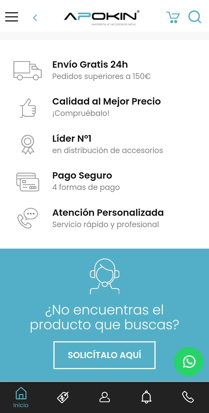 We are Manufacturers and Specialists in the sale of mobile accessories to wholesalers. If you are a company and you are looking for a mobile phone accessories wholesaler with quality products at the best price, APOKIN is your trusted supplier. APOKIN is the leading brand in the wholesale of mobile phone accessories and tablets. Sale to wholesalers of phone accessories and tablets of the Apokin, Facemobile, Proelim, Moxom and Bwoo brands - Mobile Phone Accessories Distributors.
