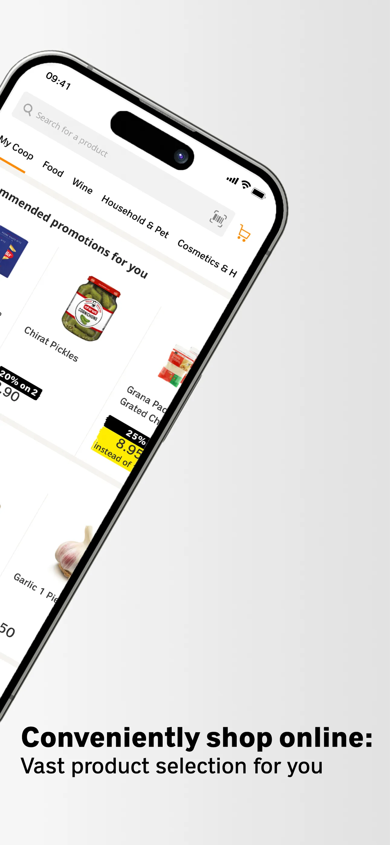 The Coop app offers a comprehensive package of functions that makes your shopping experience as comfortable as possible: order food, beverages and other products conveniently online and receive them when you want, create shopping lists, take advantage of discounts, Superpoint offers and digital coupons, and much more. Download the supermarket app for Coop Switzerland now and enjoy a new way to shop online! Buy food conveniently online with the app Coop's online food shop gives you direct access to our diverse range of products. Take advantage of our food and beverage delivery service and choose a delivery time that suits you. Discover a huge range of products...