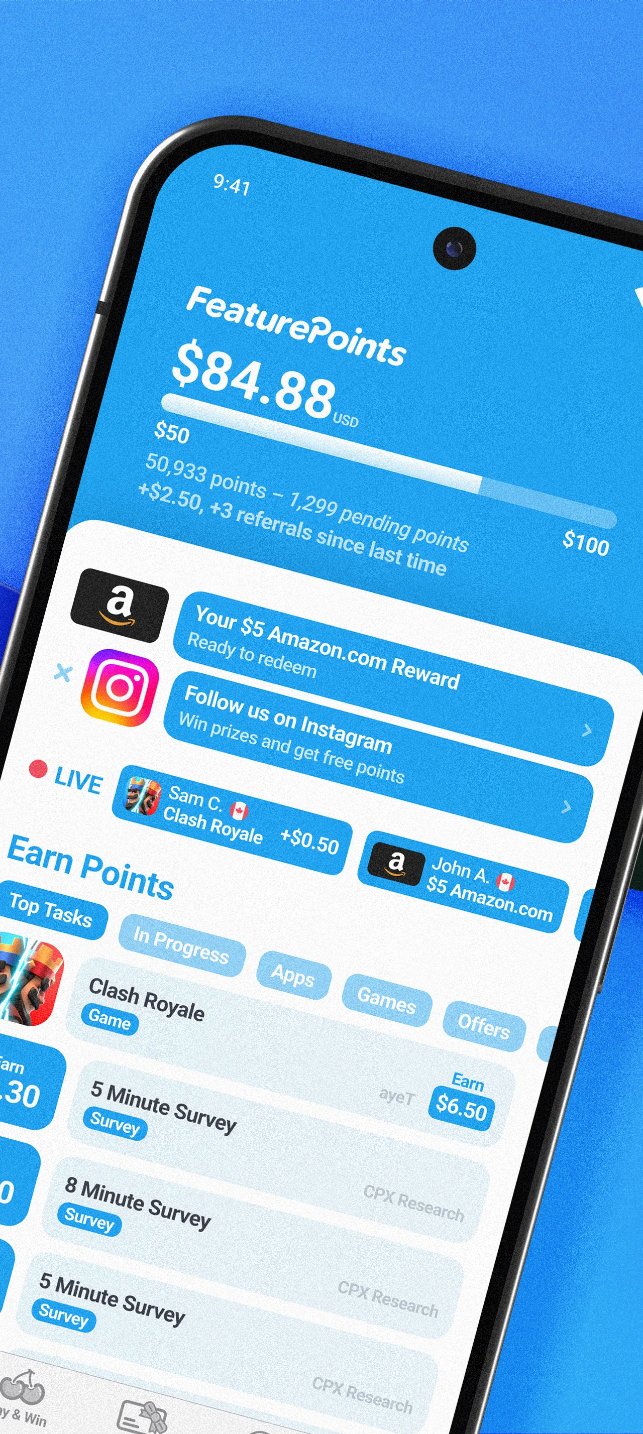 Make money and earn rewards on your phone with fun surveys, games, instant win, and more! We've paid out over $6 million US dollars in rewards since 2012. — Redeem for Amazing Rewards — Use your points to get rewards including PayPal cash, Visa pre-paid cash, or Amazon, Google Play, Xbox, PlayStation, Nintendo eShop, Starbucks gift cards and more....