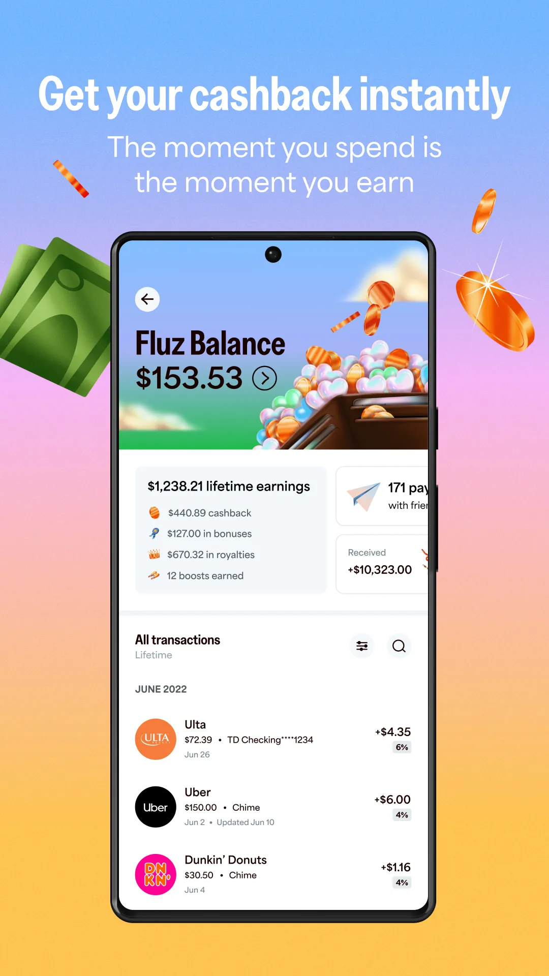 Welcome to Fluz, the cashback app. Get up to 25% cashback on your everyday purchases from 1000s of popular retailers. From your daily coffee to your grocery order, make your money go further with Fluz. Create a side gig by inviting friends. You’ll earn cashback royalties on their purchases—and the purchases of everyone they invite, too. With Fluz, you can: Earn cashback every day...