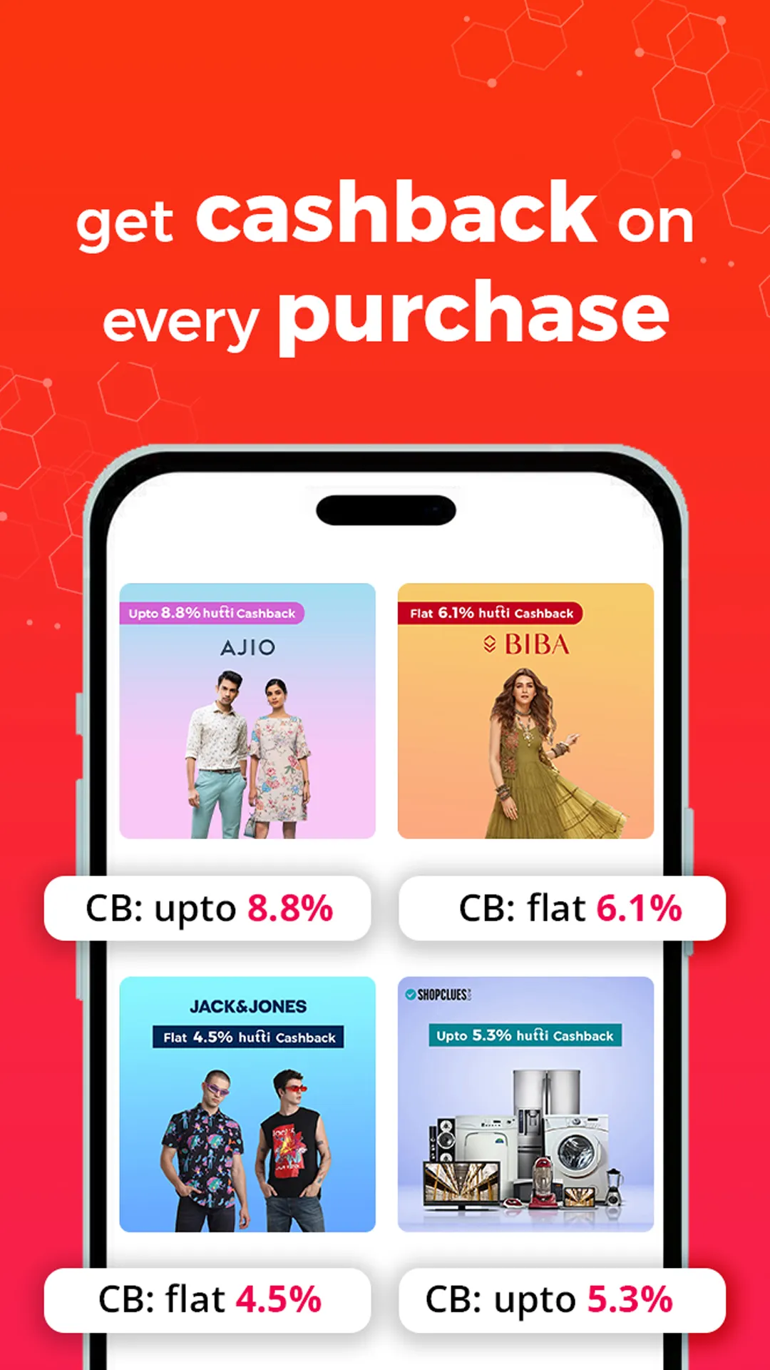 Hutti: India’s top Cashback & Discount Coupons App! Save big with Hutti, your all-in-one shopping app for cashback, exclusive coupons, and discounts on 100+ top Indian brands like Flipkart, Myntra, Ajio, Nykaa, and more. Shop fashion, electronics, groceries, beauty, and travel with promo codes and deal alerts for maximum savings. Discover the Hutti Advantage - 100+ Brands in One App: Enjoy extra cashback on your online purchases from Flipkart, Myntra, Ajio, Mamaearth, Boat, Lenskart, Tata Cliq, Booking.com and many more....