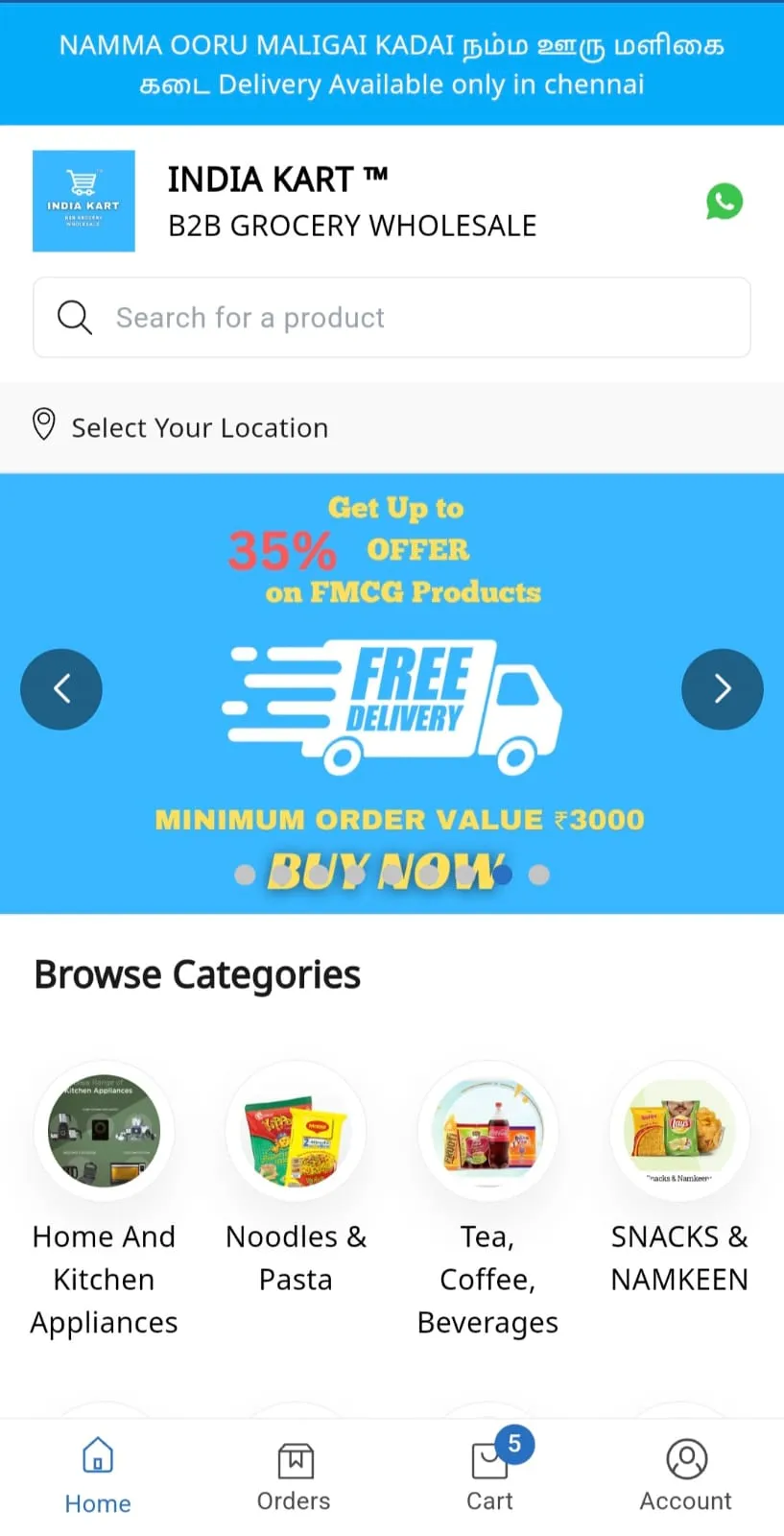 India Kart: Your One-Stop B2B Grocery Wholesale Market in Chennai Download the India Kart app and experience the revolution in B2B grocery wholesale in Chennai. Effortless Ordering: * Browse: Explore a vast catalog of grocery products from top brands across categories like: * Fruits & Vegetables: Fresh produce delivered daily. * Dairy & Bakery: Milk, cheese, bread, and more....
