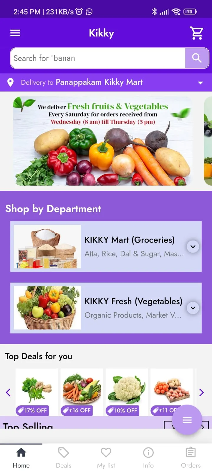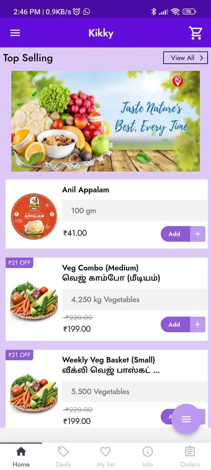 Kikky Fresh is deals all types of vegetables, fruits, leaf greens. This is a famous store in city. Now they are taking online orders and provide delivery to your door steps.