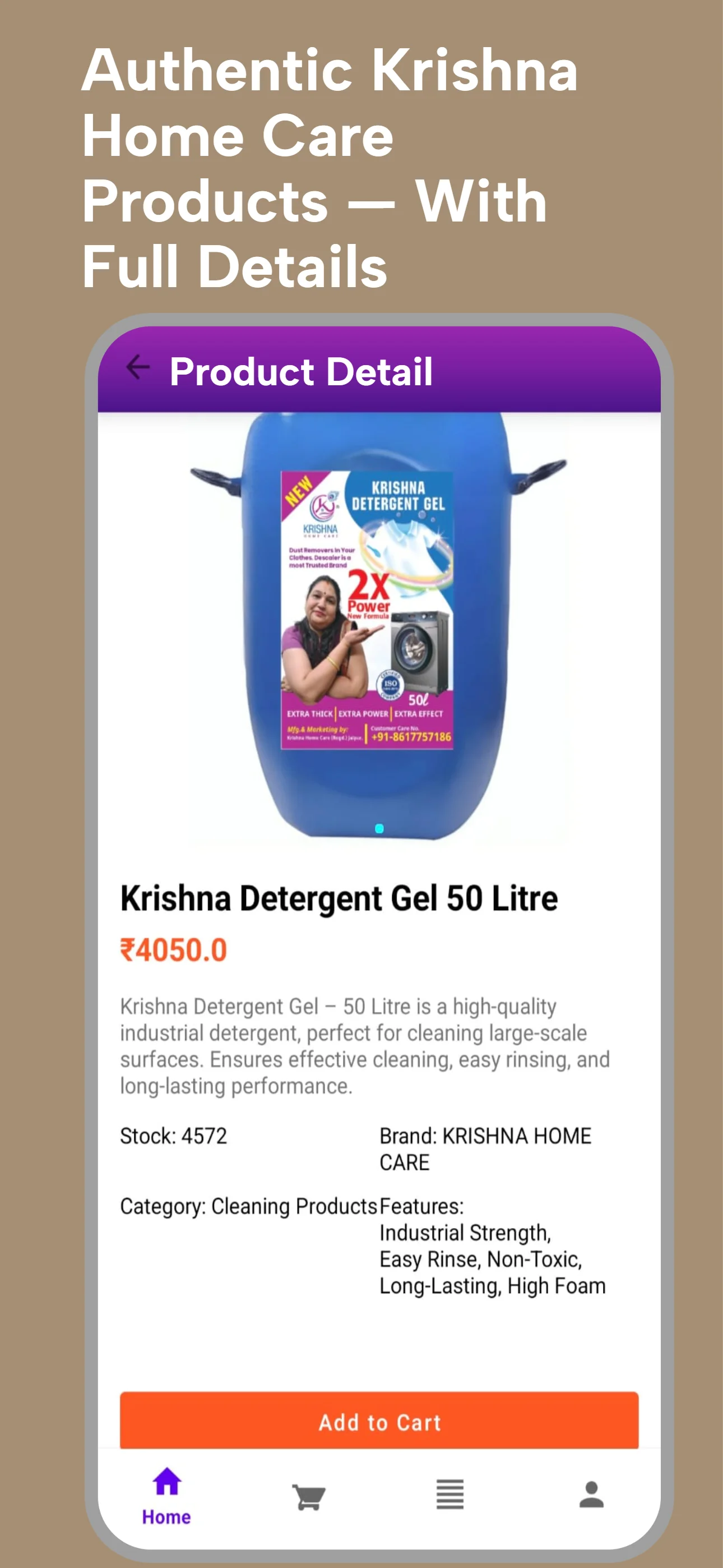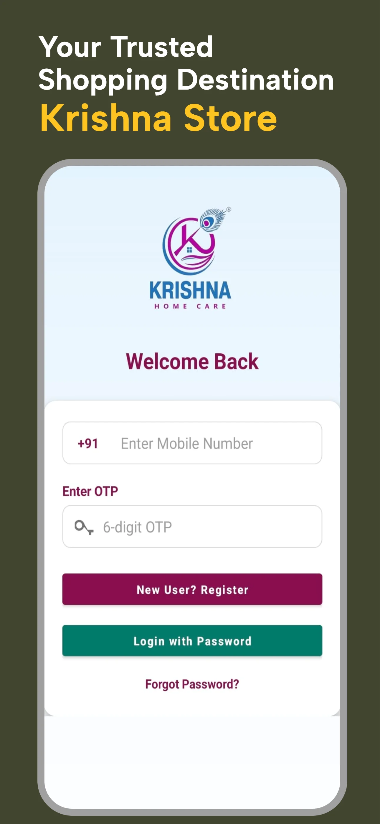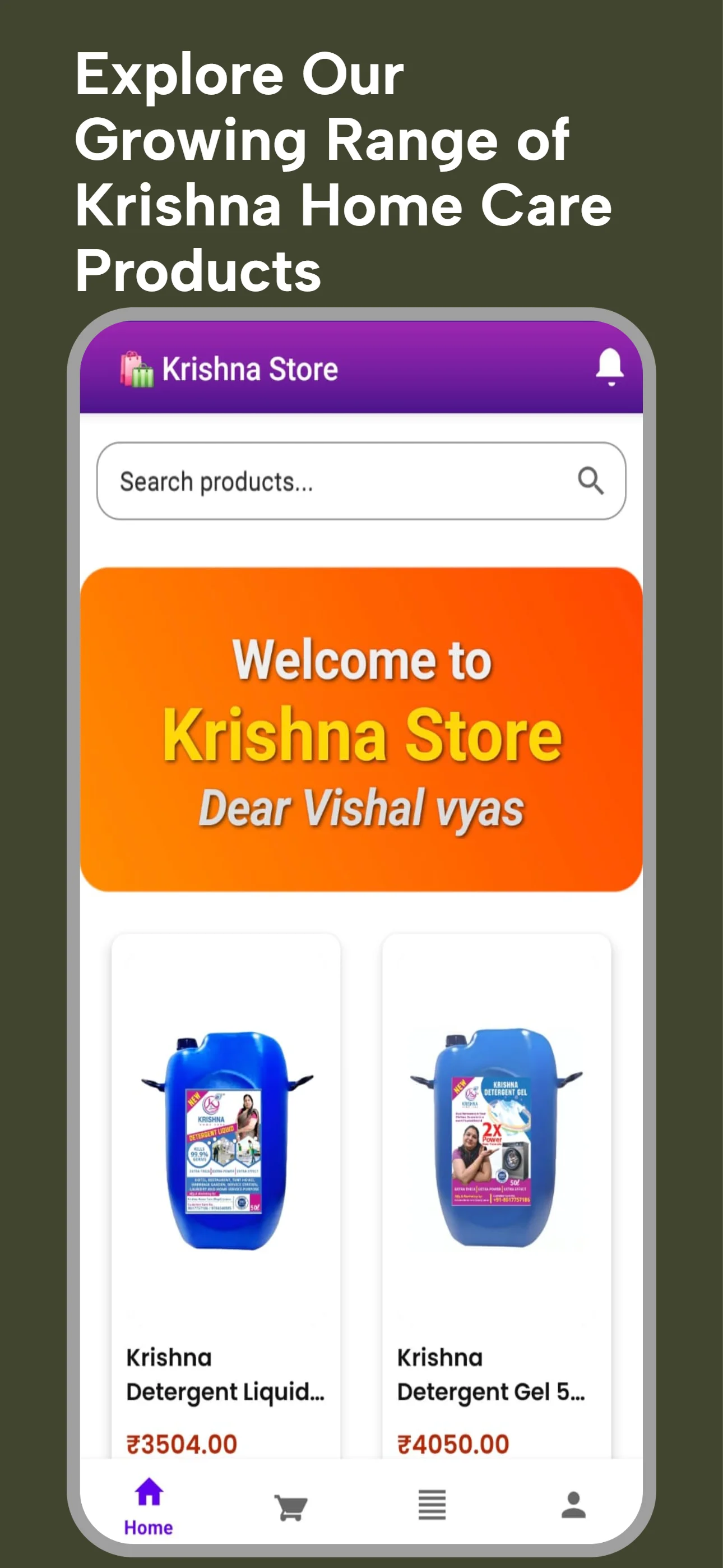Whether you need cleaning products, detergents, or household items, Krishna Store makes shopping simple and convenient—all from your mobile device. Key Features: - Browse a wide range of home care products - Register easily with email, phone number, and password...