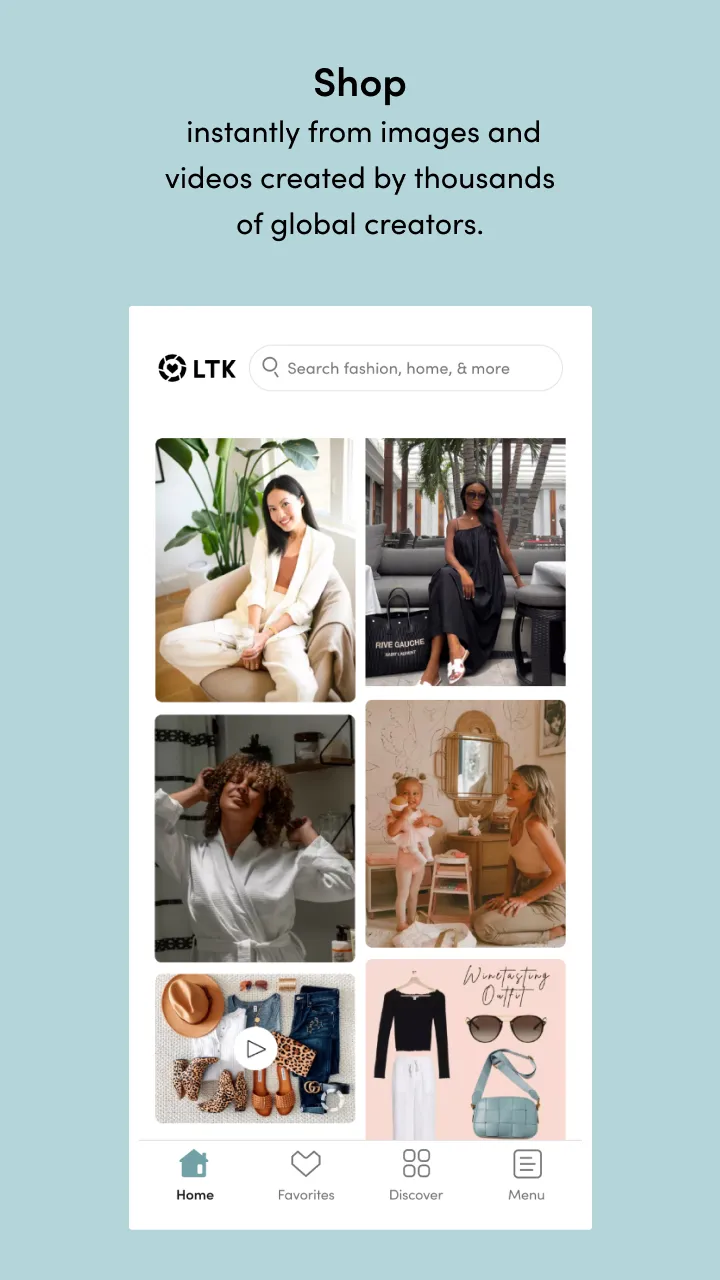 Shop real looks tried and styled by real people. Get Creator-guided, product recommendations and style inspo, right in the LTK app. Shop finds from your favorite Creators for OOTD inspo, home decor, active, makeup, and more! Whether it’s a GRWM video featuring date night looks, or a skincare and makeup haul, discover product recommendations for everything you need and purchase it with confidence–all in the LTK app! FOLLOW your favorite Creators (and discover new ones!) to curate your perfect shoppable feed. ...