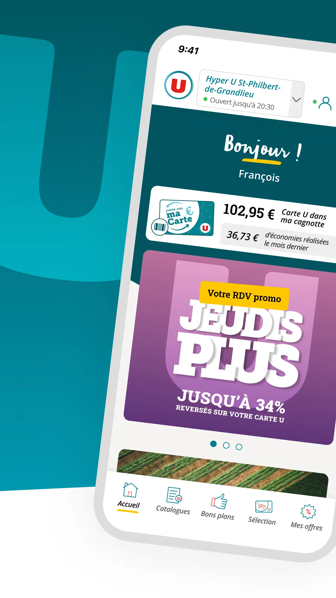 Thanks to the My Magasin U mobile application, find your Super U, Hyper U or U express store in your pocket. - Catalogs Promotions and good deals: don't miss out on promotions, consult the current catalogs and the latest offers from your store! - My Loyalty Space: Access good deals, promotions, Loyalty Selection of the month, see the amount of your € U Card pot and your savings. Also find your coupons and challenges to use on the purchase of products from major brands. - My U Card: take your 100% digital loyalty card with you everywhere and present it at the checkout to save money, even when you don't have an internet connection....