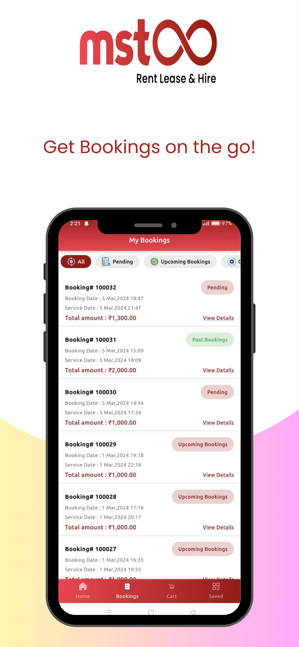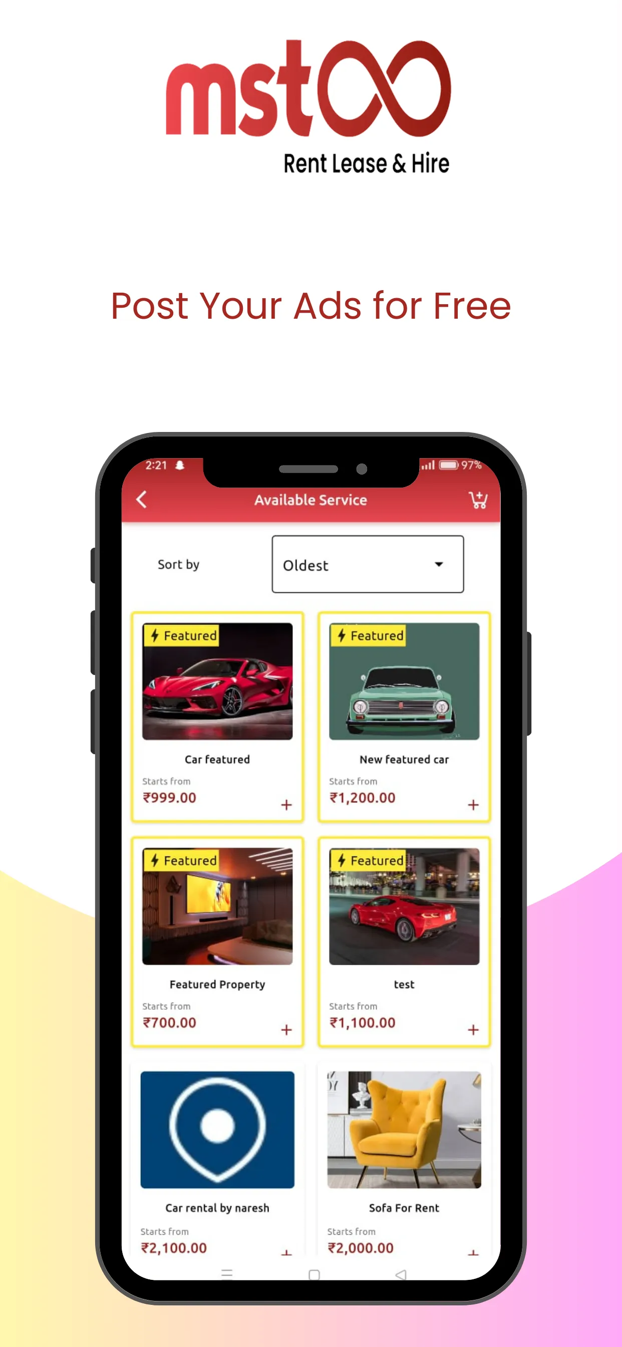 "Mstoo is your ultimate destination for all your Rent, Lease & Hire needs. Whether you're looking to rent furniture for your new apartment, lease a car for your weekend getaway, or hire equipment for your DIY project, Mstoo has got you covered. Discover a diverse marketplace where you can find a wide range of products and services available for temporary use. From electronics, appliances, and tools to vehicles, machinery, and even event spaces, Mstoo connects you with trusted providers offering competitive rental, leasing, and hiring options. With Mstoo, you can easily browse through listings, compare prices, and connect with verified vendors right from your mobile device. Our user-friendly interface makes it simple to search for specific items, read reviews from other users, and make informed decisions about your rentals. ...